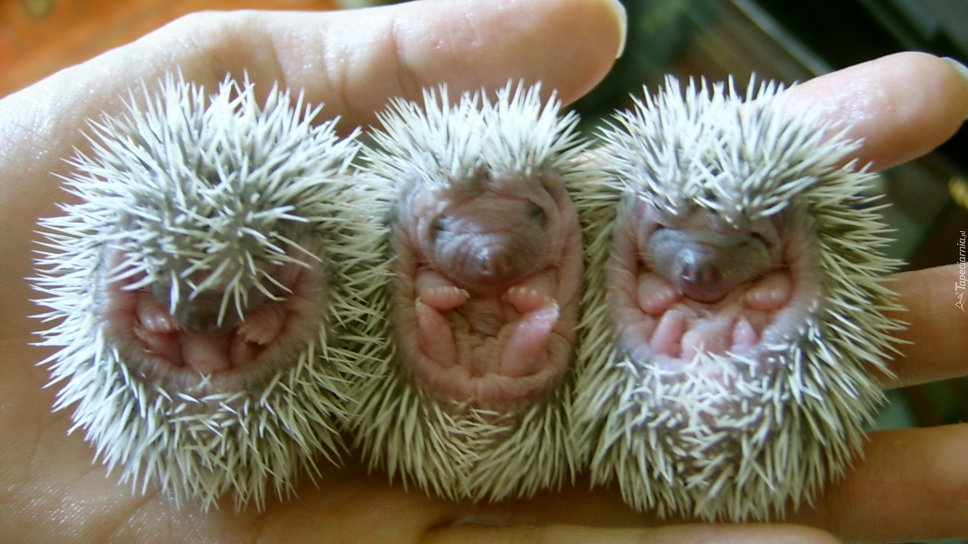Edytor tapety: Trzy, Małe, Jeże, Dłoń