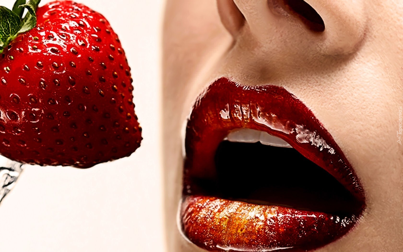 Edytor tapety: Usta, Czerwona, Pomadka, Truskawka