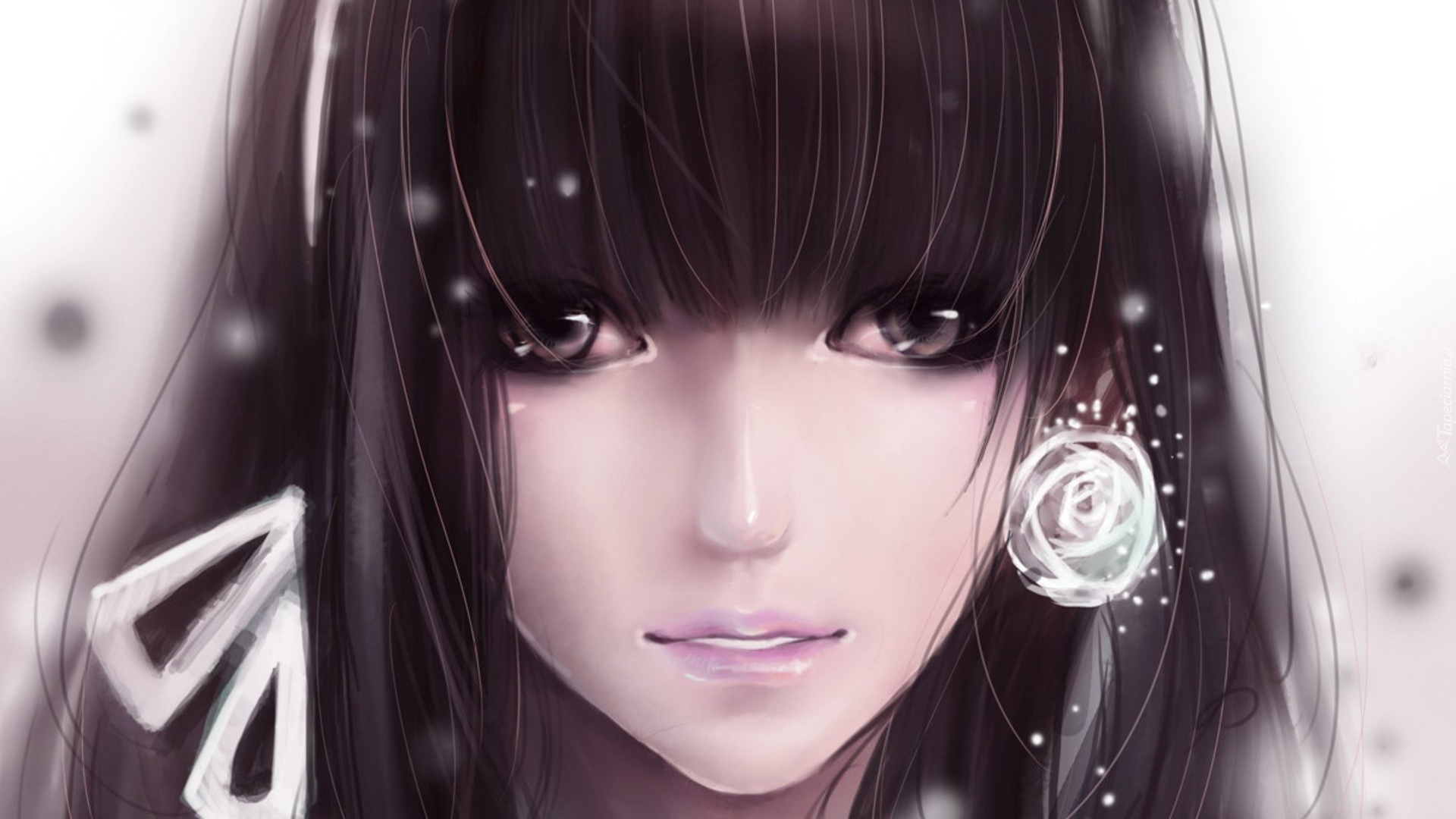 Edytor tapety: Dziewczyna, Kwiatek, Spojrzenie