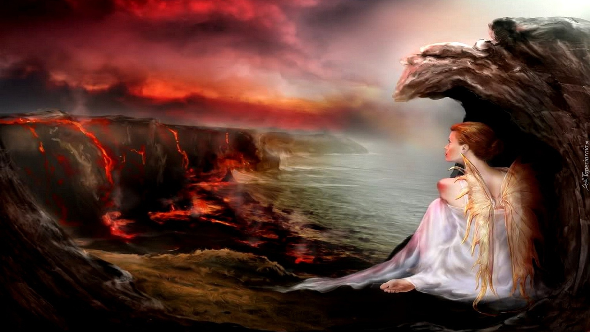 Edytor tapety: Kobieta, Motyl, Woda, Skały