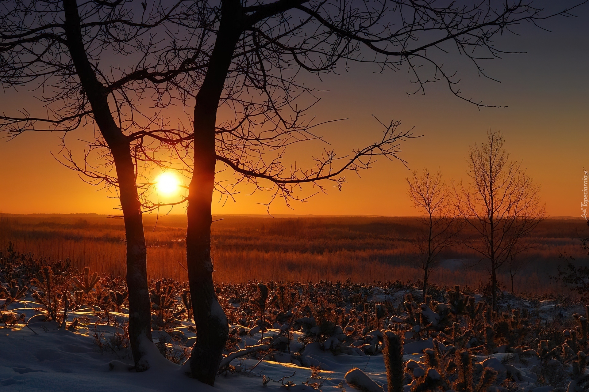 Edytor tapety: Krajobraz, Zachód, Słońca, Śnieg