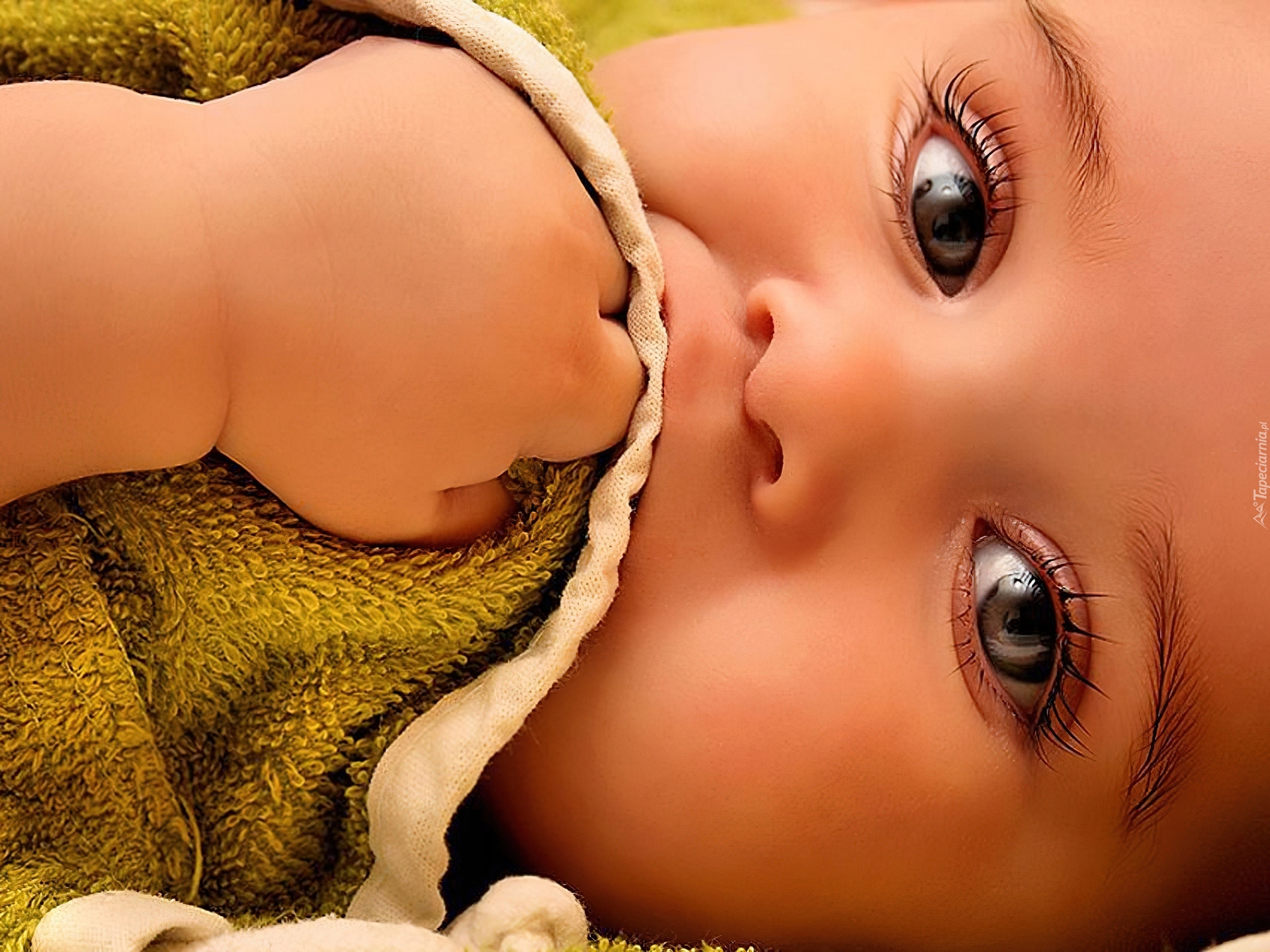 Edytor tapety: Twarz, Dziecka, Rączka, Kocyk