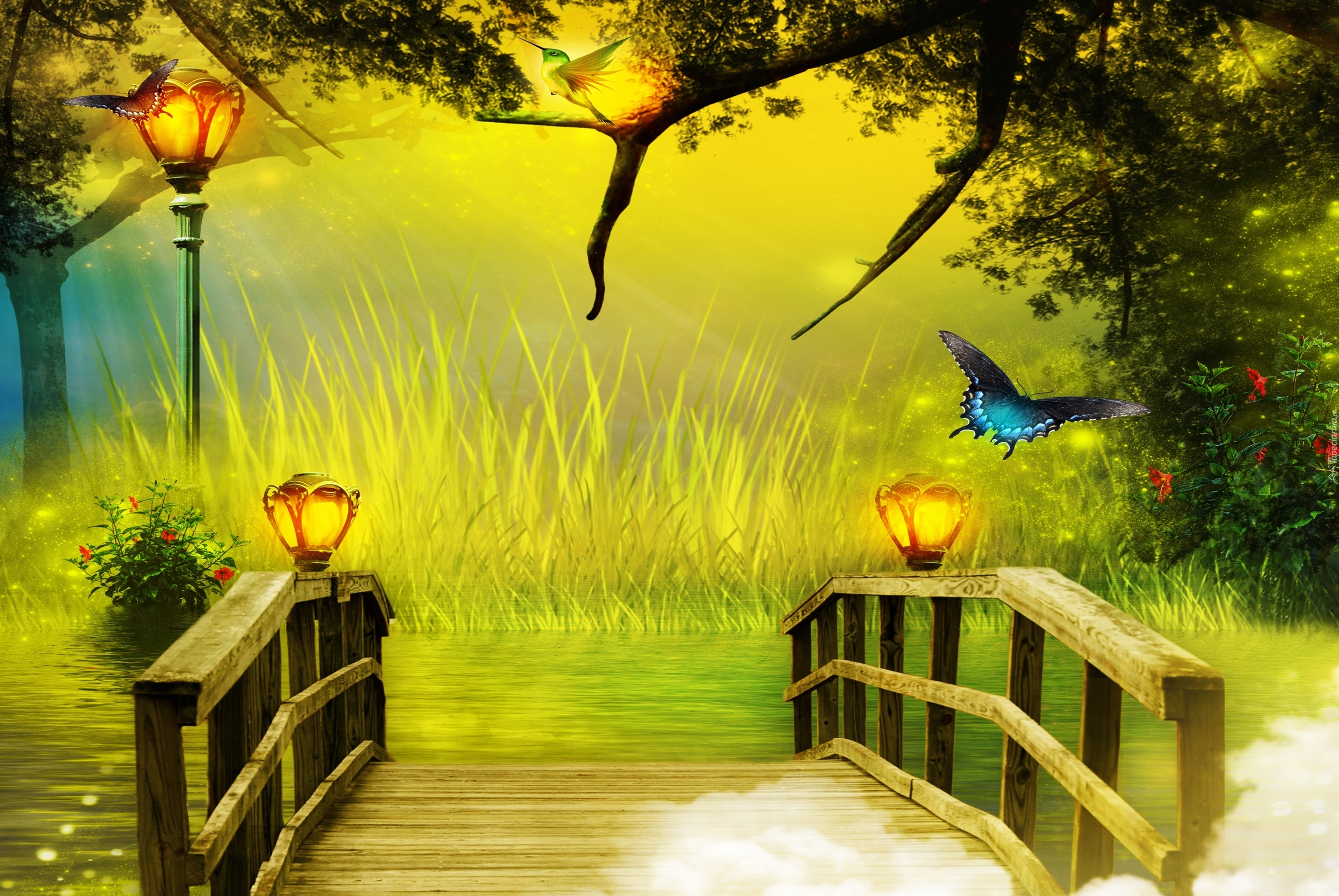 Edytor tapety: Mostek, Woda, Motyle