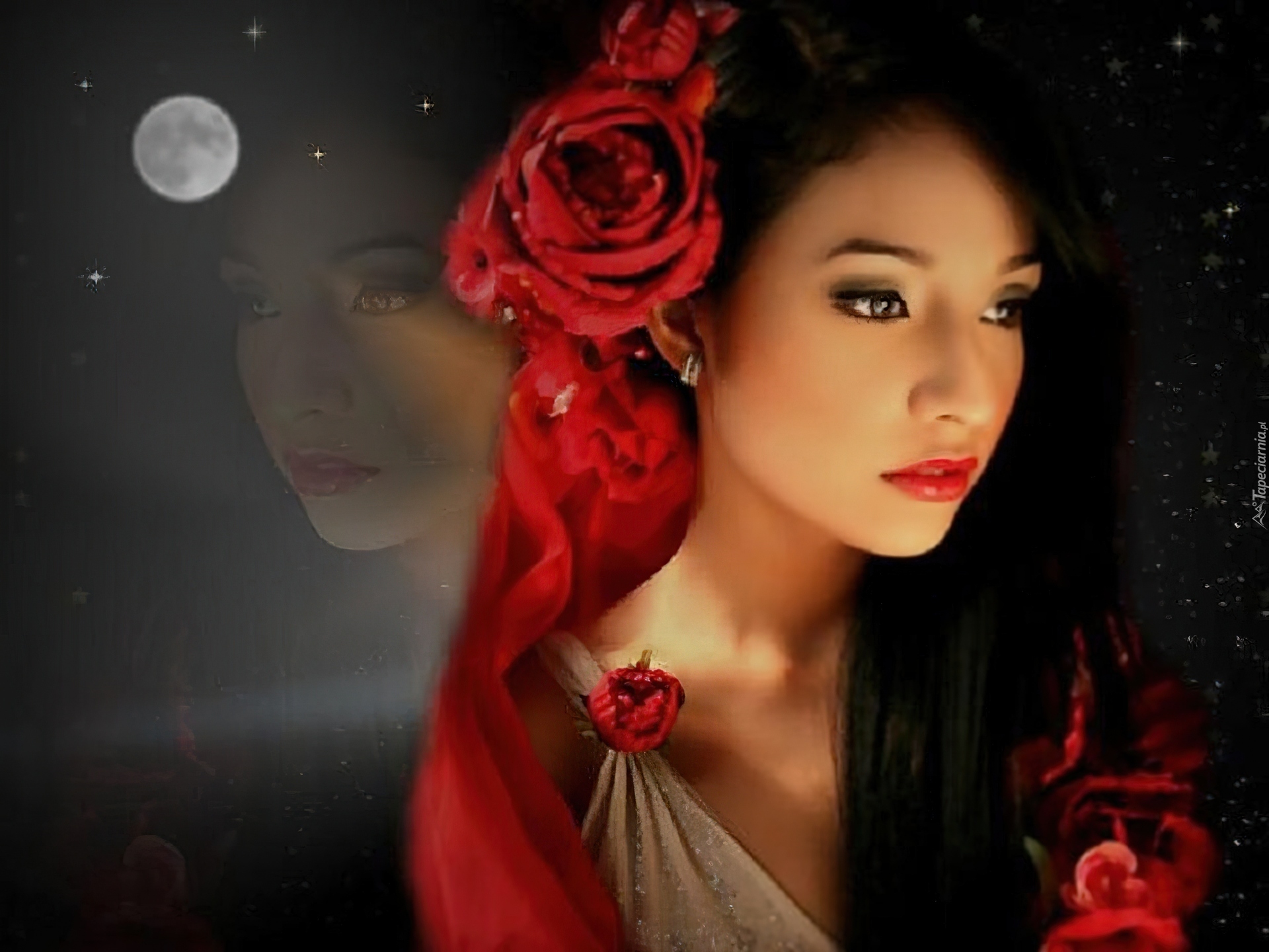 Edytor tapety: Dziewczyna, Cień, Róże