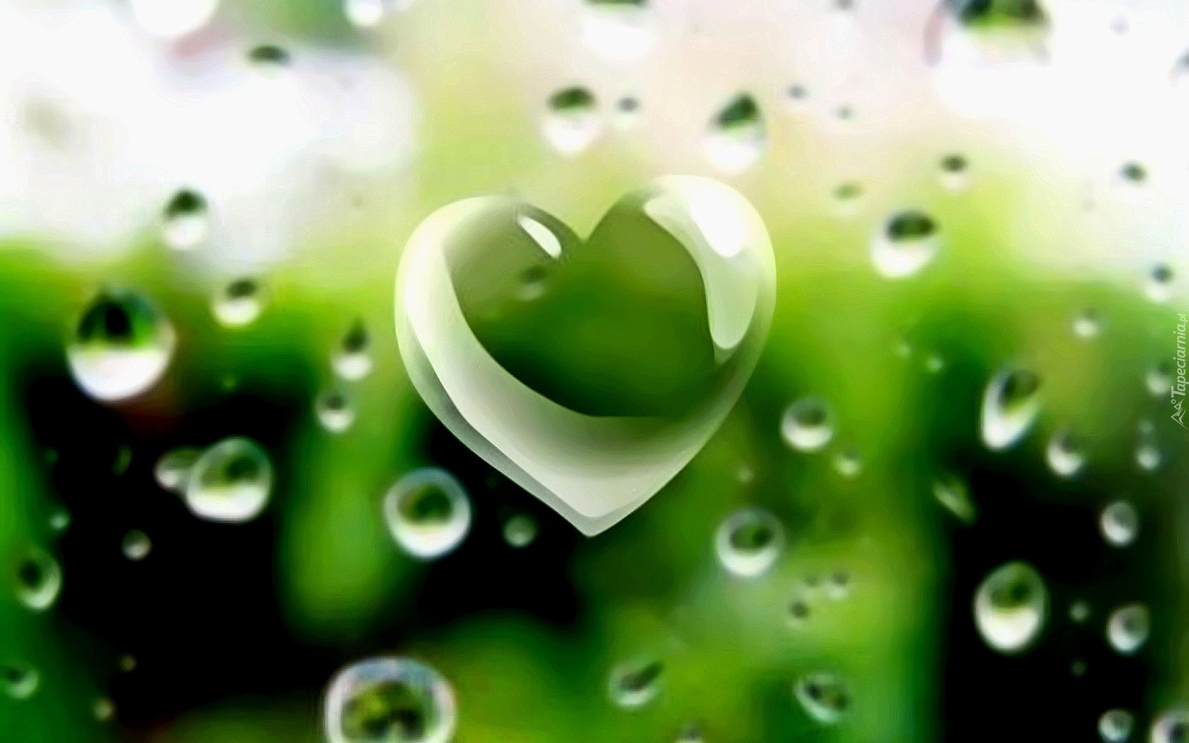 Edytor tapety: Zielone, Serce, Krople, Deszczu