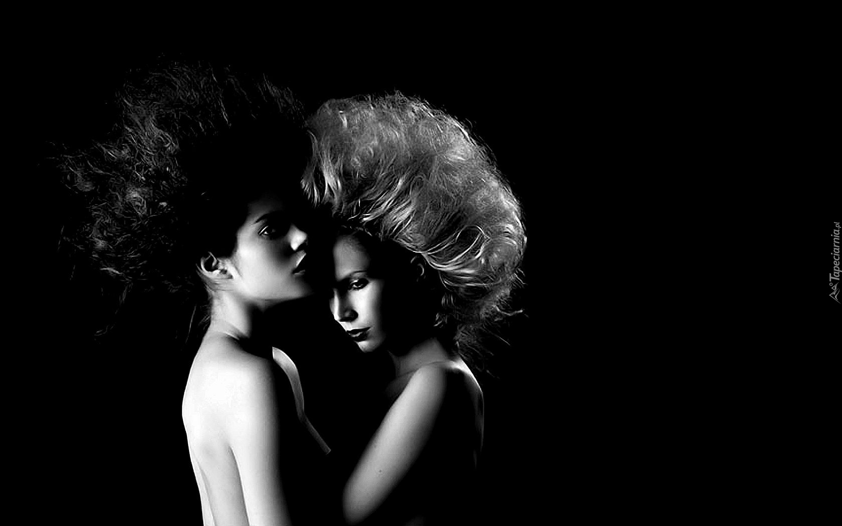 Edytor tapety: Dwie, Kobiety, Czarno, Białe