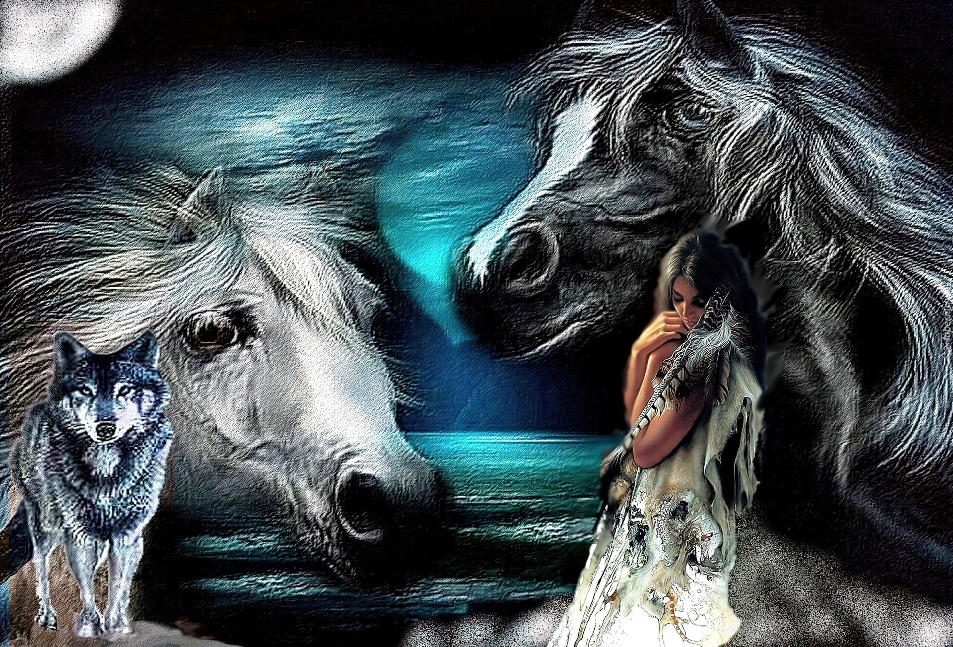 Edytor tapety: Kobieta, Konie, Woda