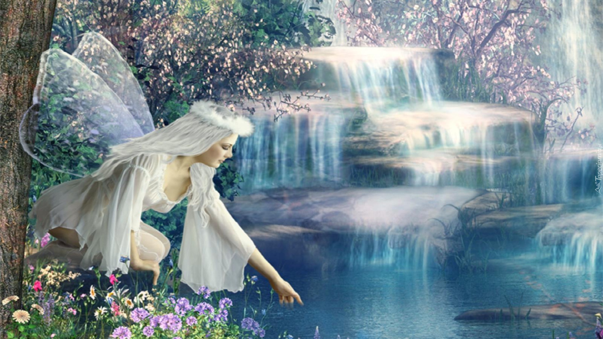 Edytor tapety: Dziewczyna, Motyl, Wodospad