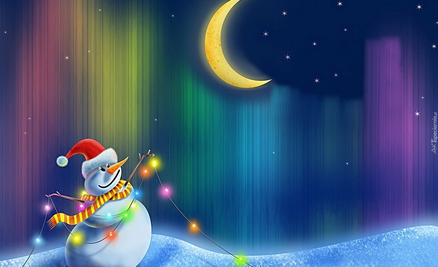 Edytor tapety: Bałwanek, Noc, Lampki, Święta