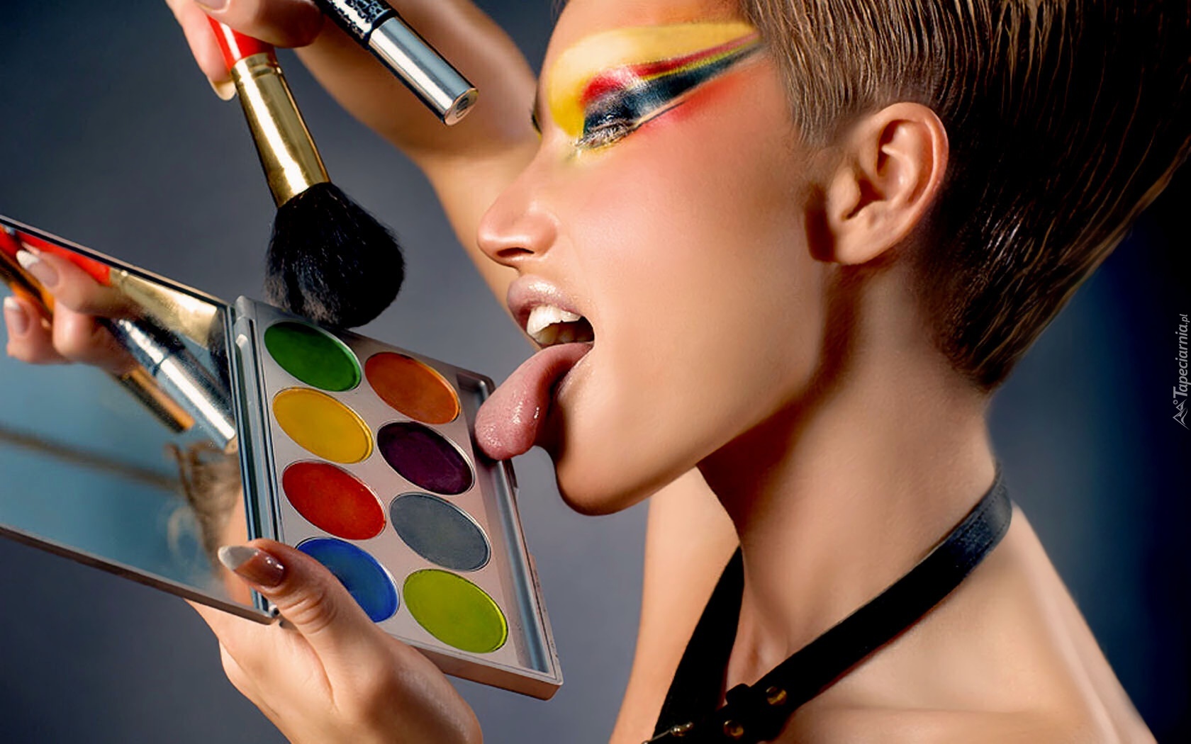 Edytor tapety: Kobieca, Twarz, Makijaż, Paleta, Barw
