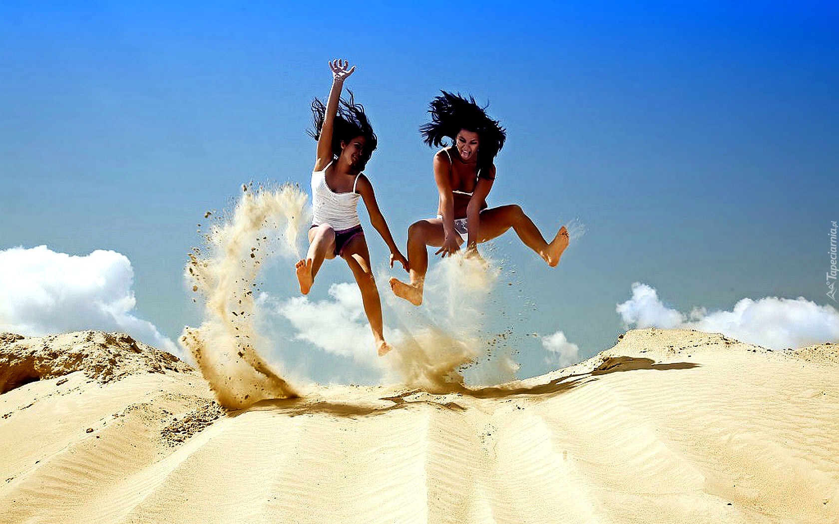 Edytor tapety: Dwie, Kobiety, Piasek