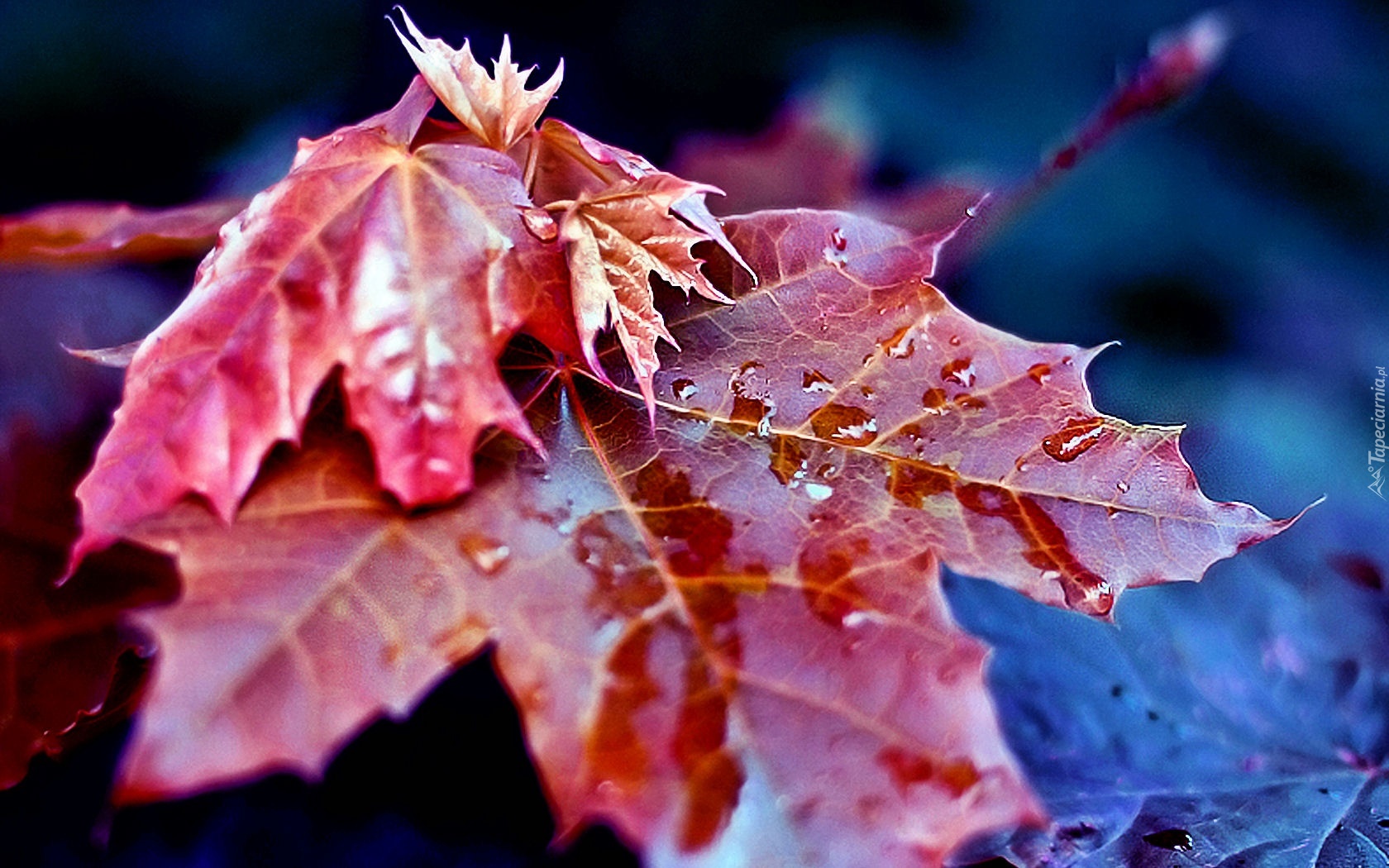 Edytor tapety: Czerwone, Liście, Krople, Deszczu