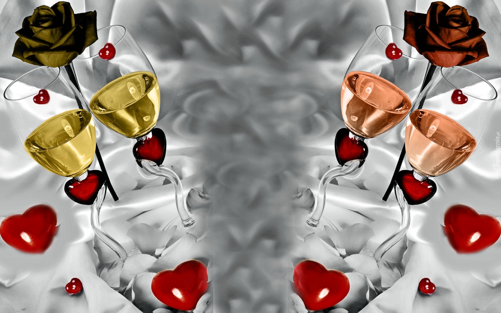Edytor tapety: Serca, Róże, Lampki, Szampana