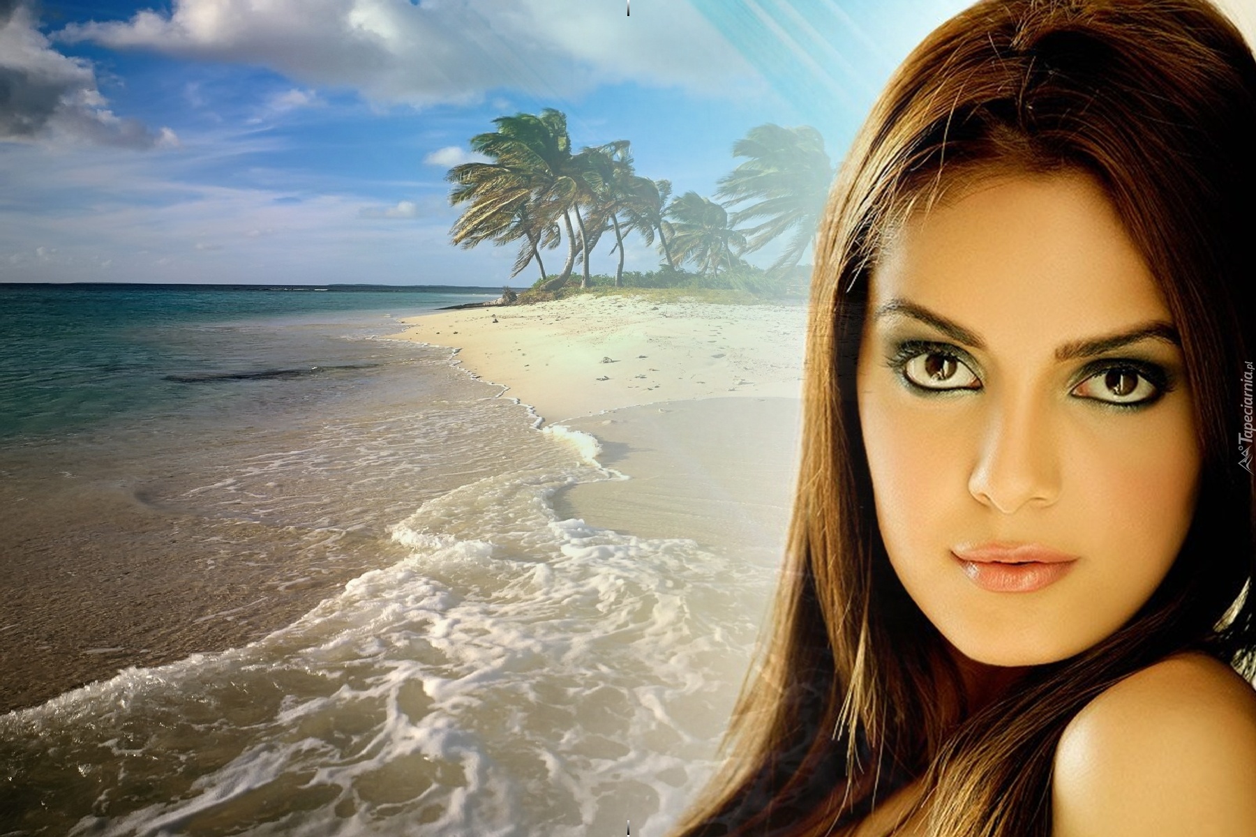 Edytor tapety: Kobieta, Makijaż, Plaża, Palmy