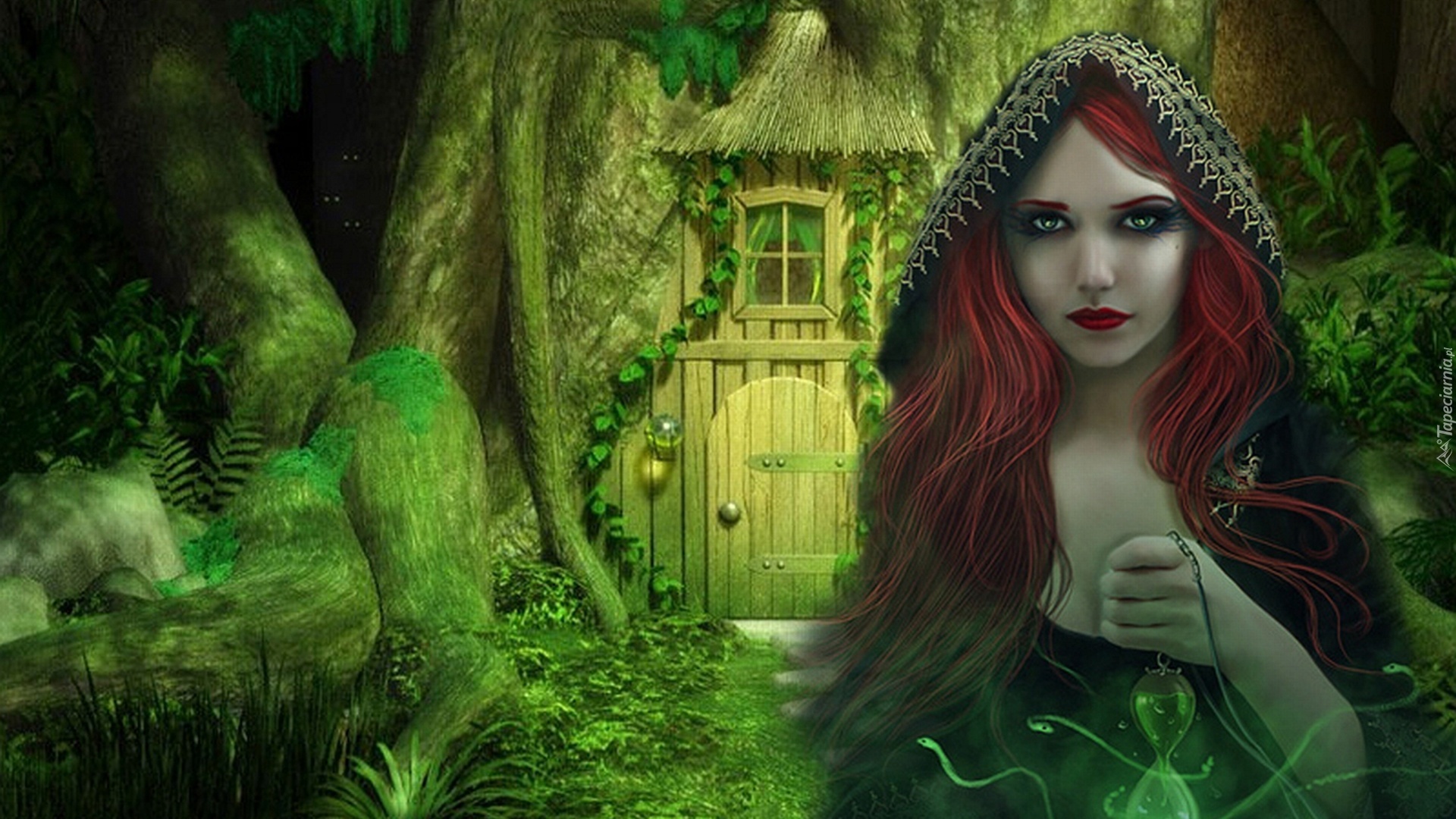 Edytor tapety: Kobieta, Kaptur, Zielona, Kraina