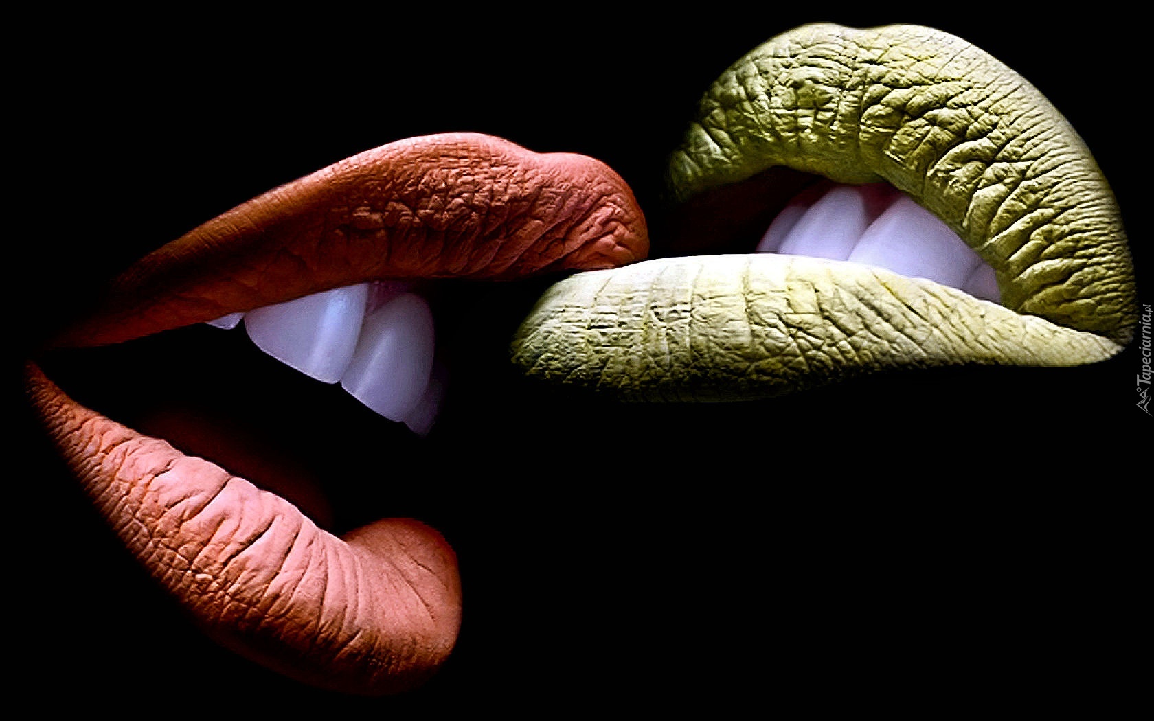Edytor tapety: Usta, Pomarańczowe, Zielone