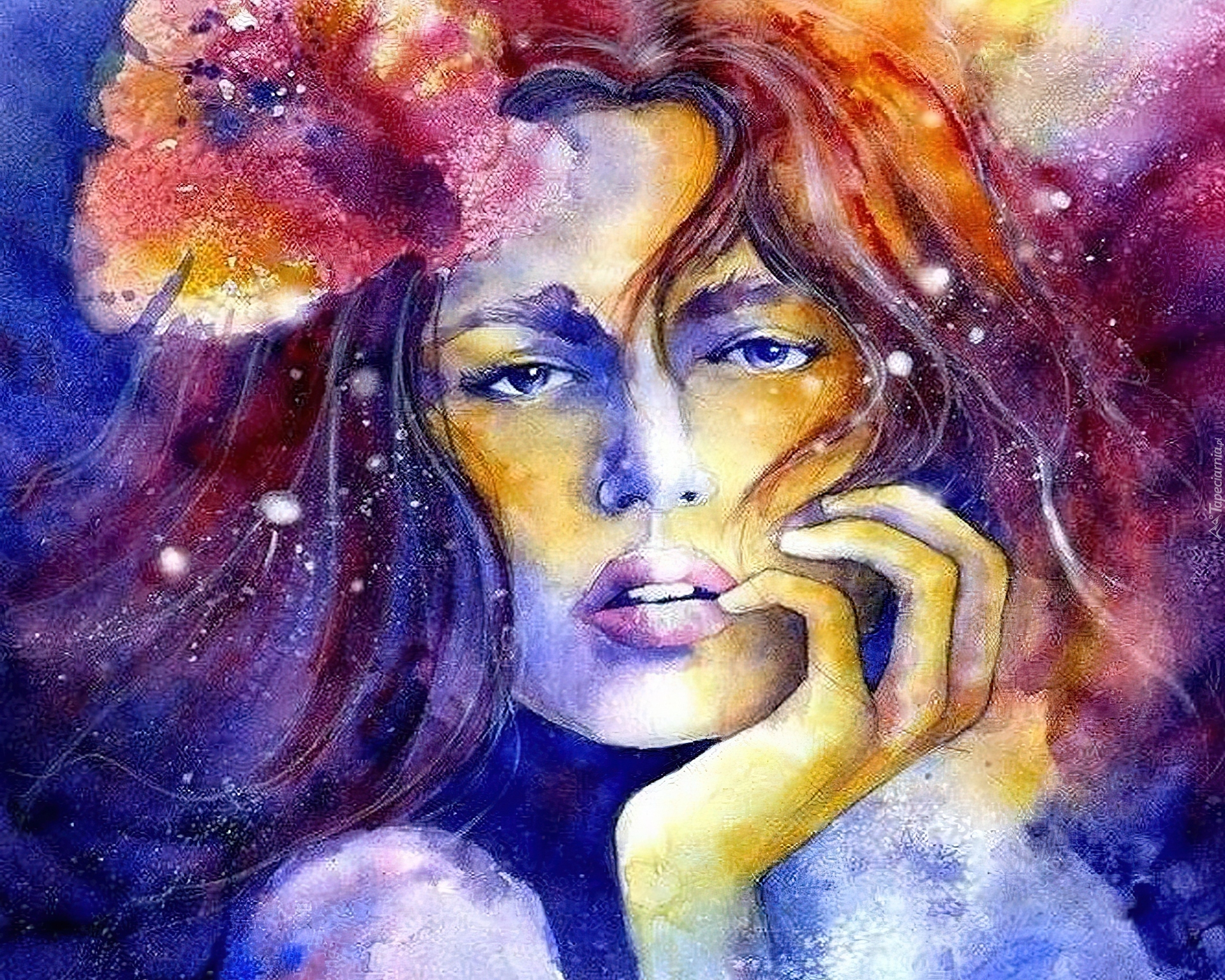 Edytor tapety: Kobieta, Ręka, Kwiat, Portret