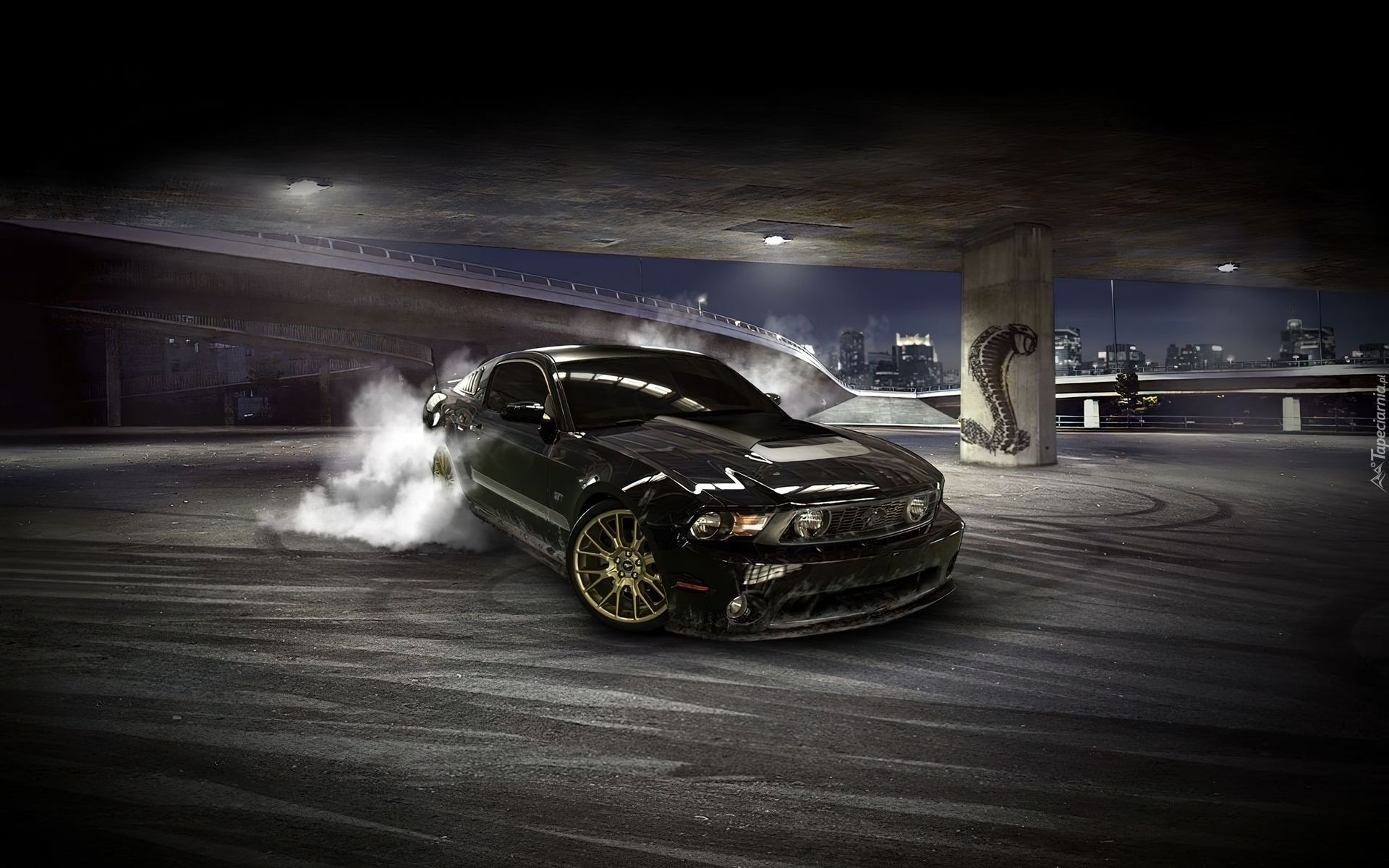 Edytor tapety: Mustang, Dym, Opony