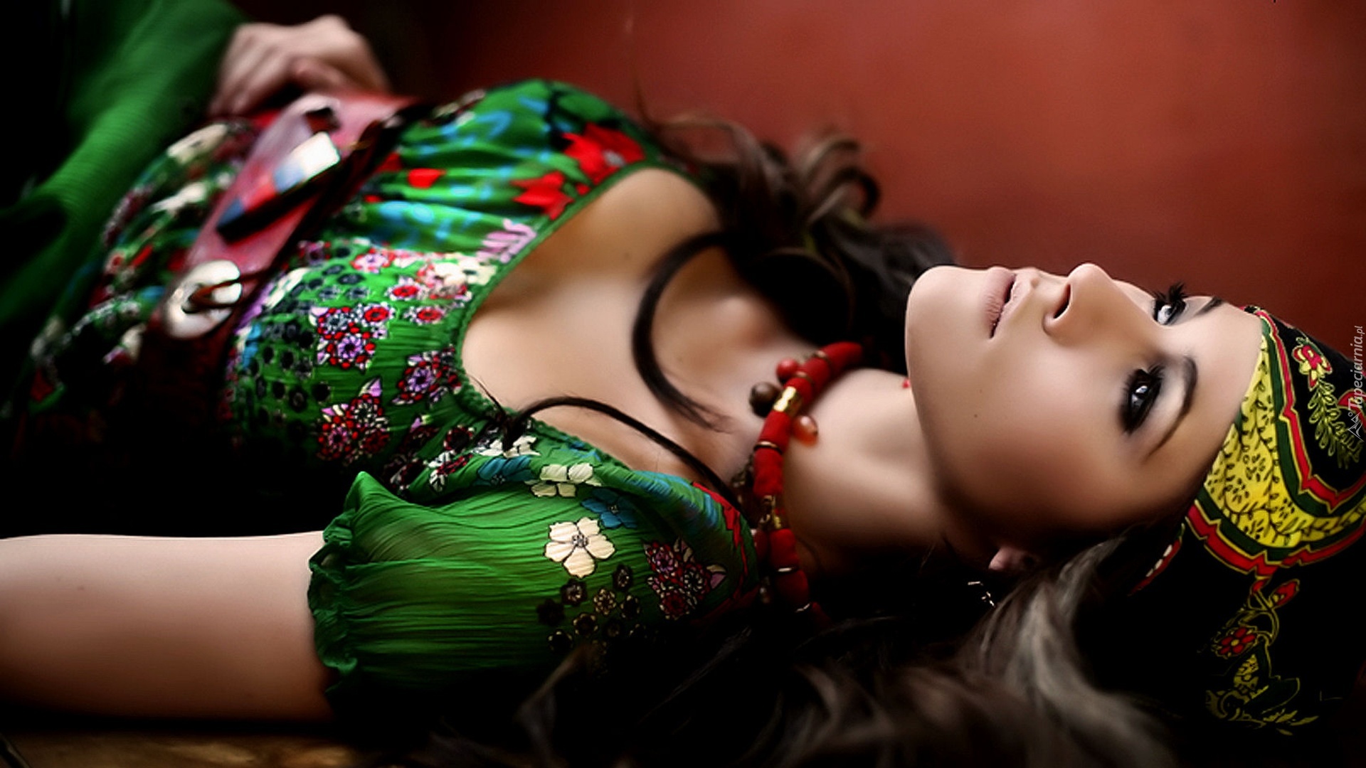 Edytor tapety: Kolorowa, Suknia, Kobieta, Korale