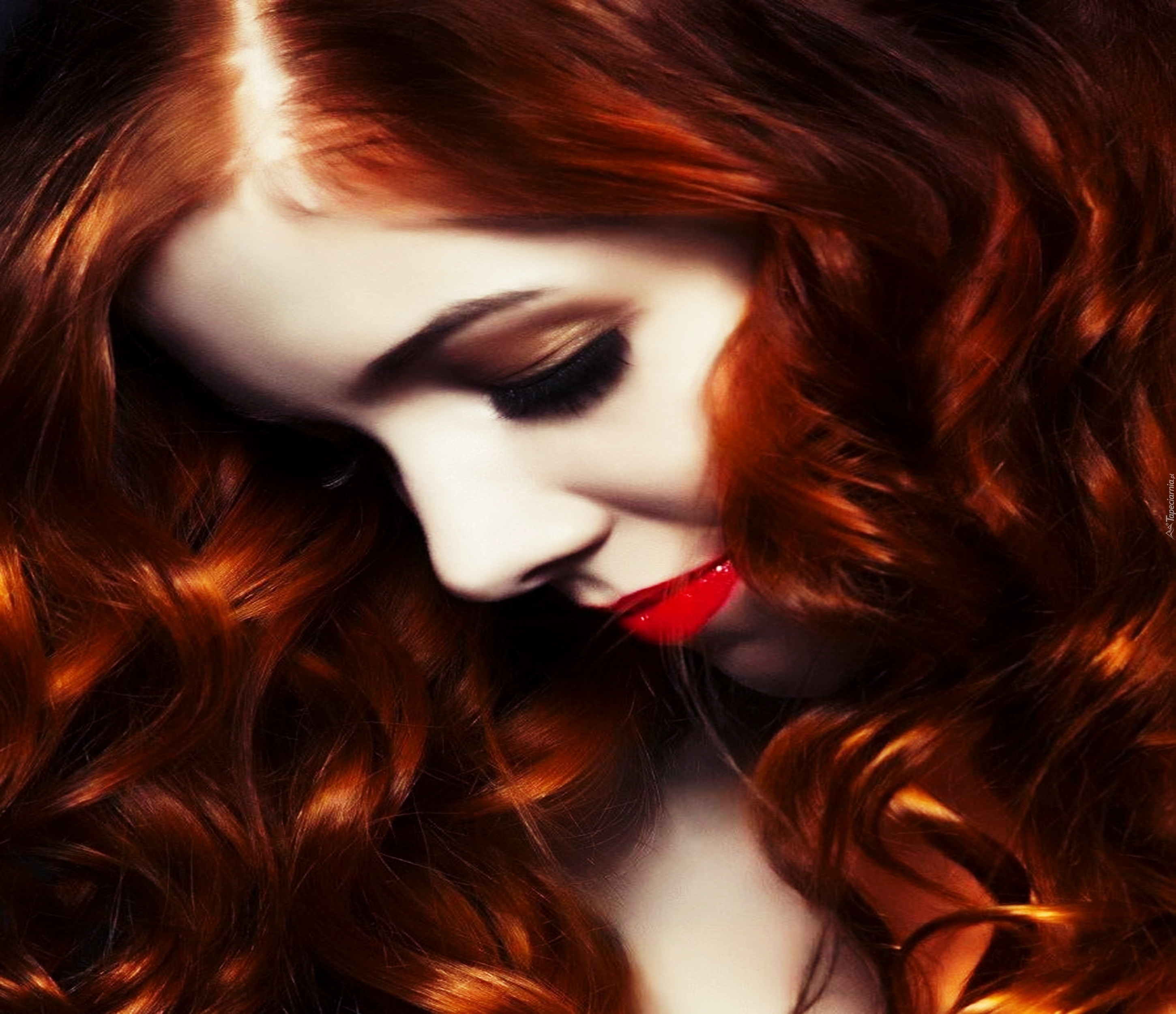 Edytor tapety: Kobieta, Makijaż, Czerwone, Włosy