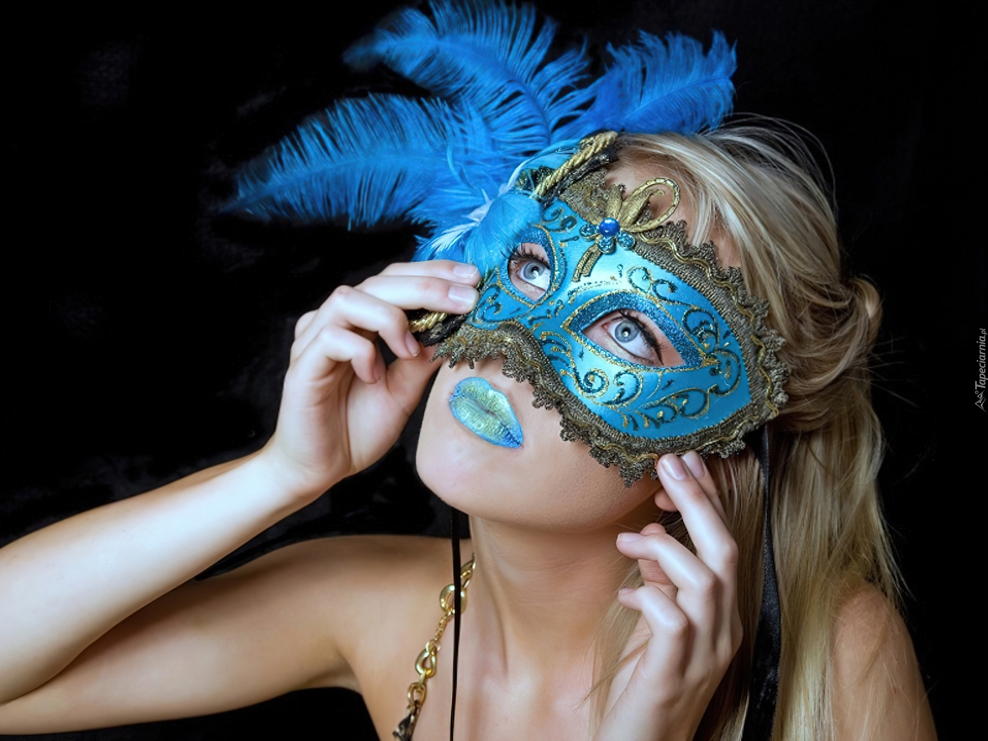 Edytor tapety: Kobieta, Maska, Niebieska, Pomadka