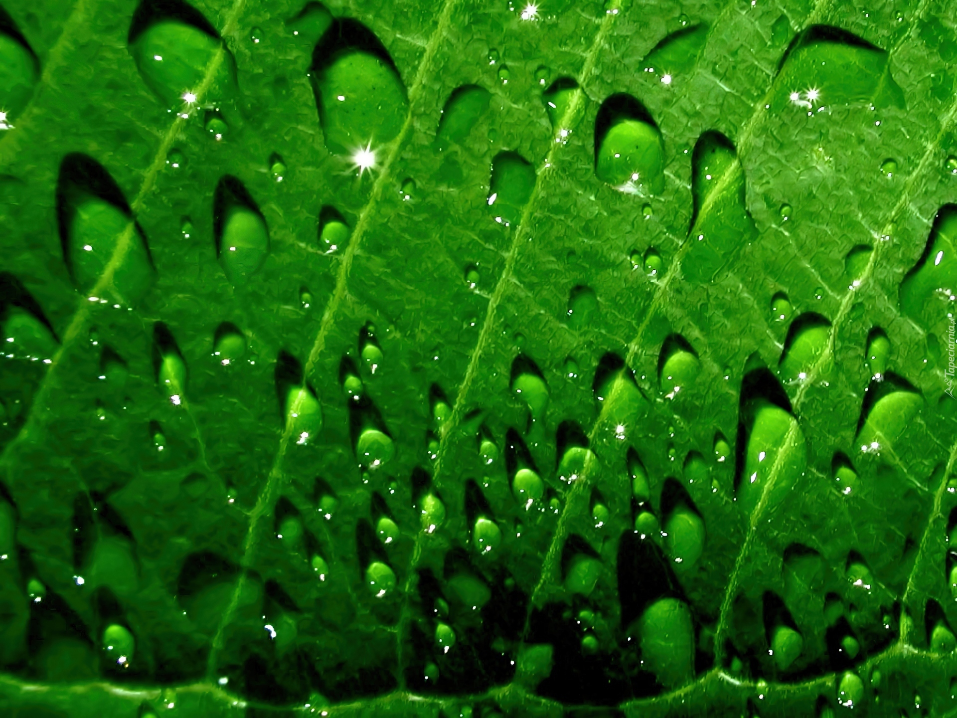 Edytor tapety: Zielony, Liść, Krople, Wody
