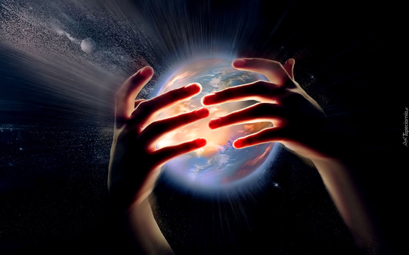 Edytor tapety: Ręce, Kula, Ziemska