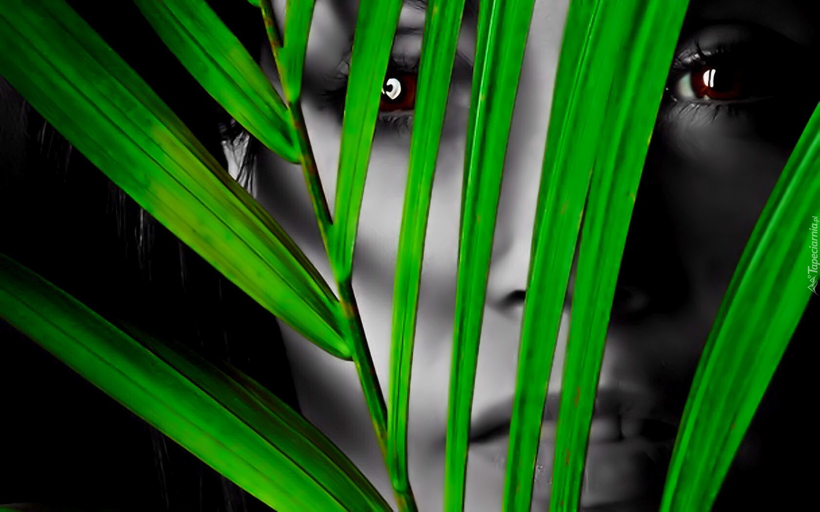 Edytor tapety: Kobieca, Twarz, Zielona, Roślina