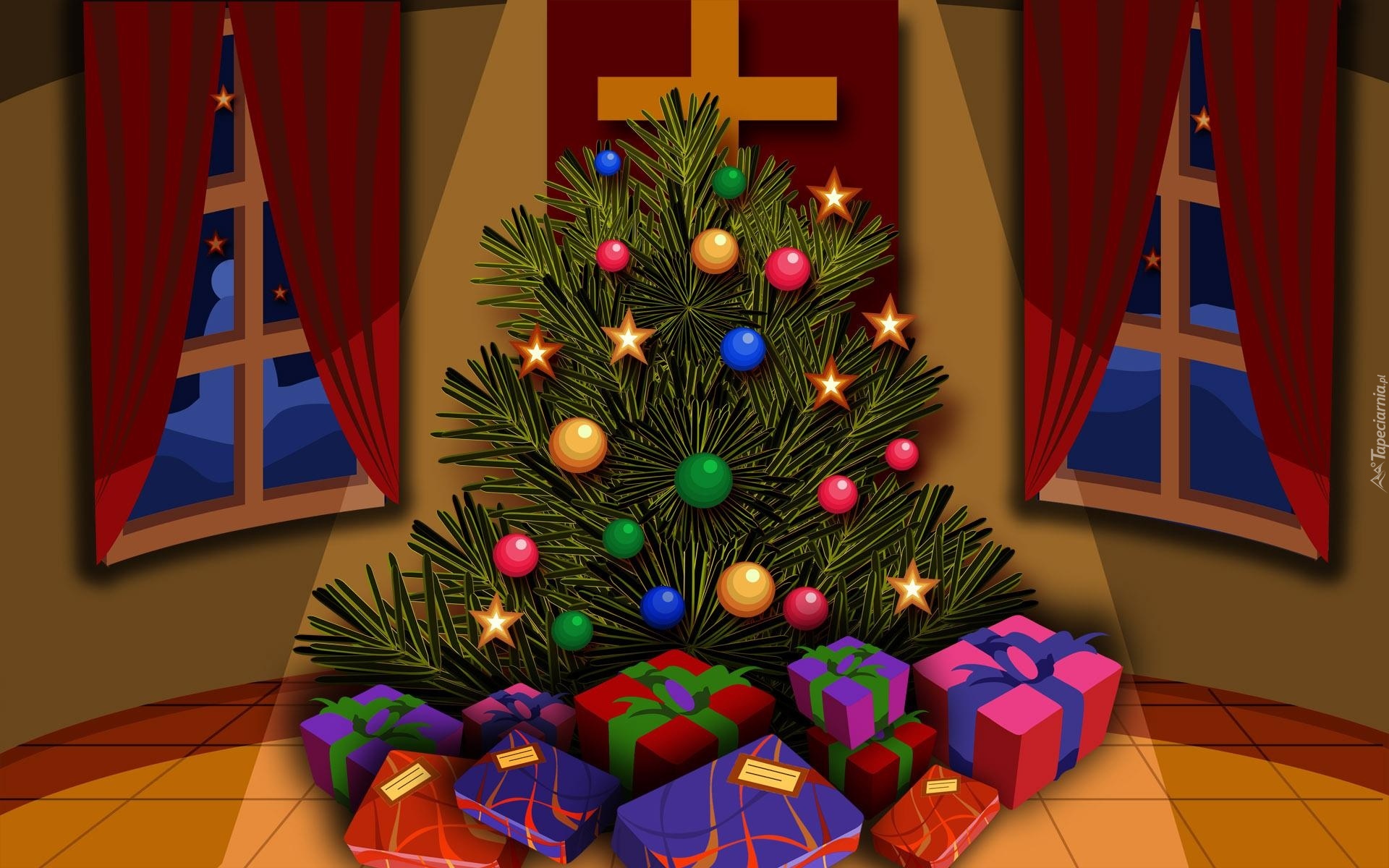 Edytor tapety: Choinka, Prezenty, Bombki