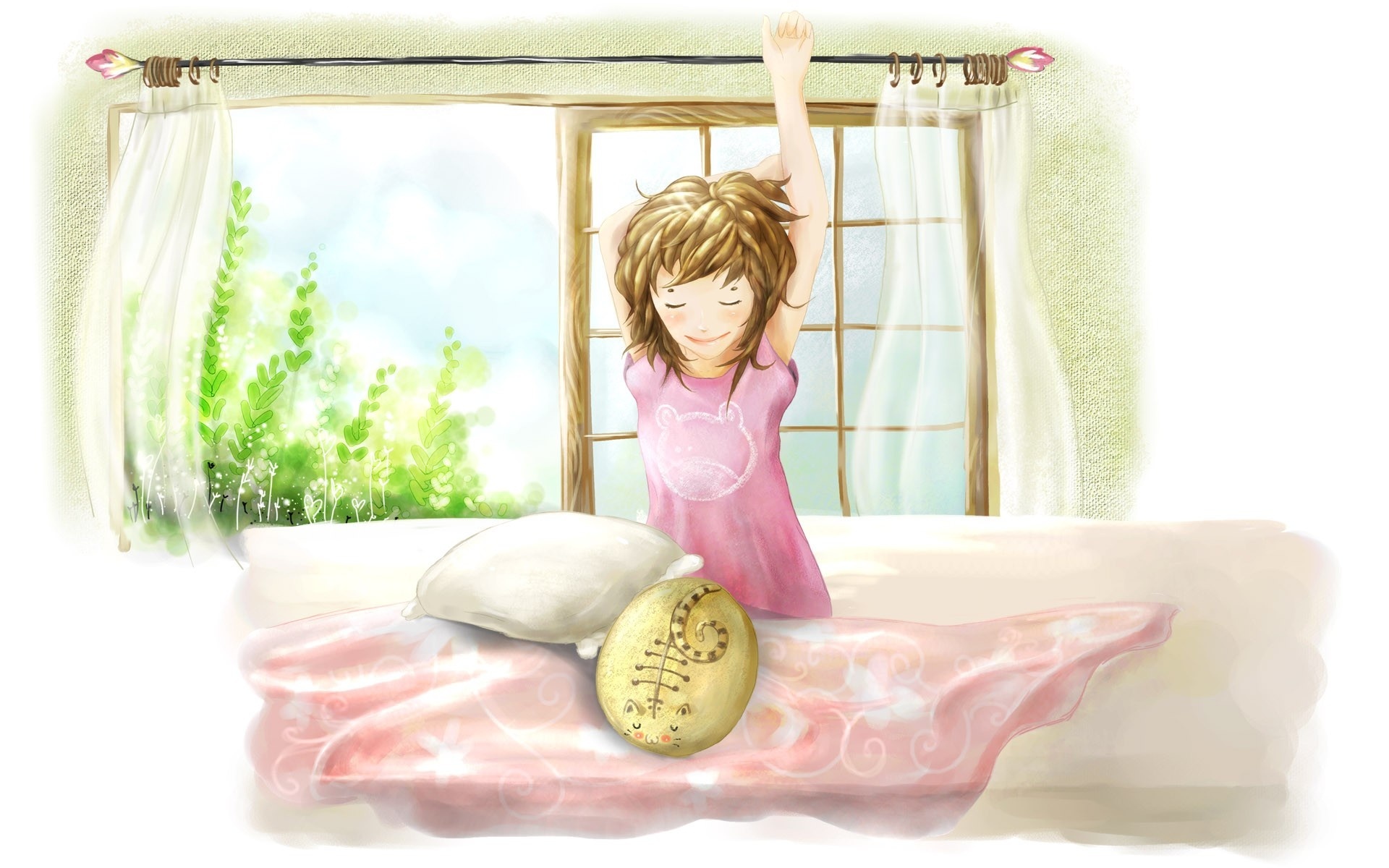 Edytor tapety: Poranek, Dziewczyna, Pobudka