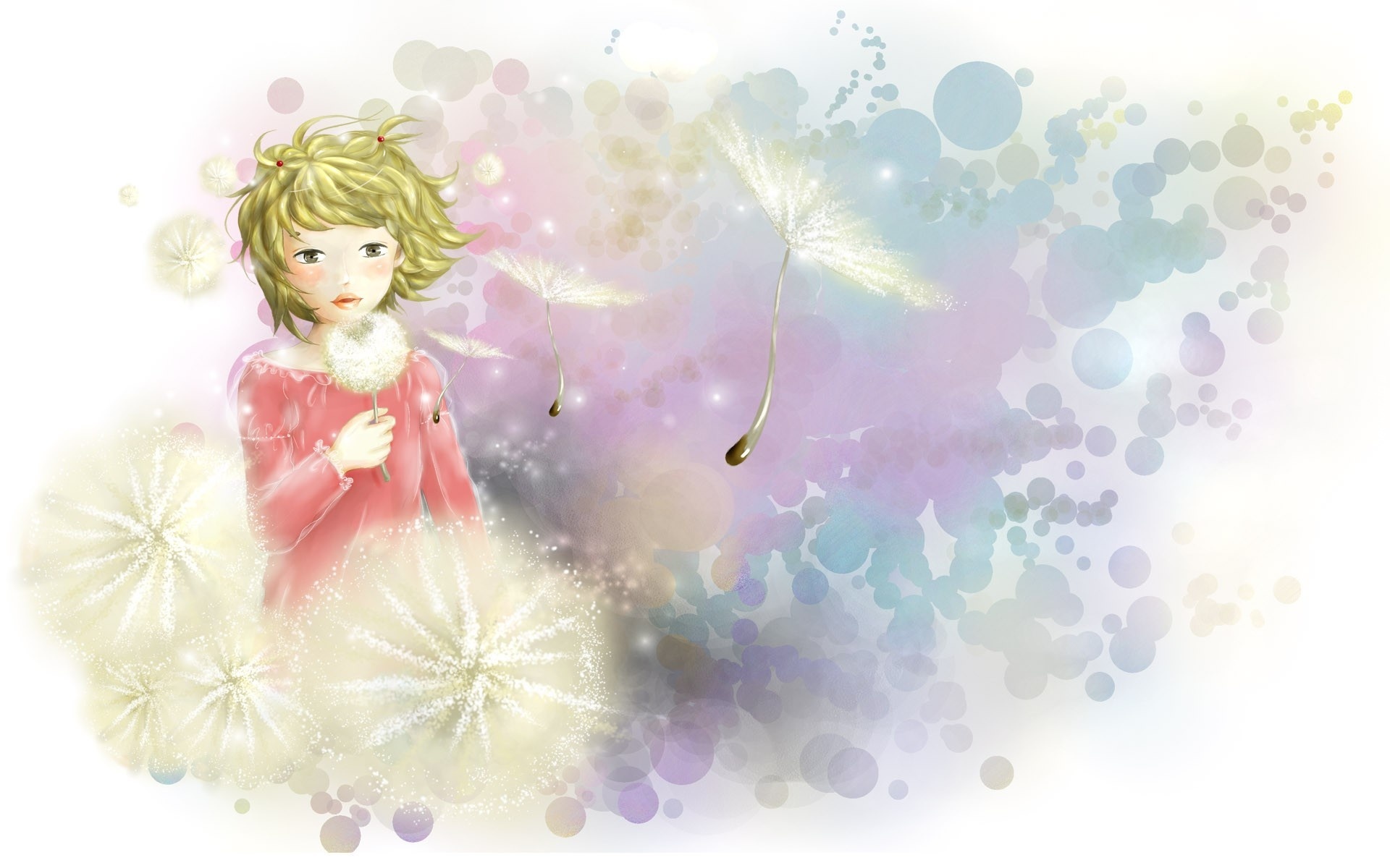 Edytor tapety: Dziewczyna, Wiatr, Dmuchawce