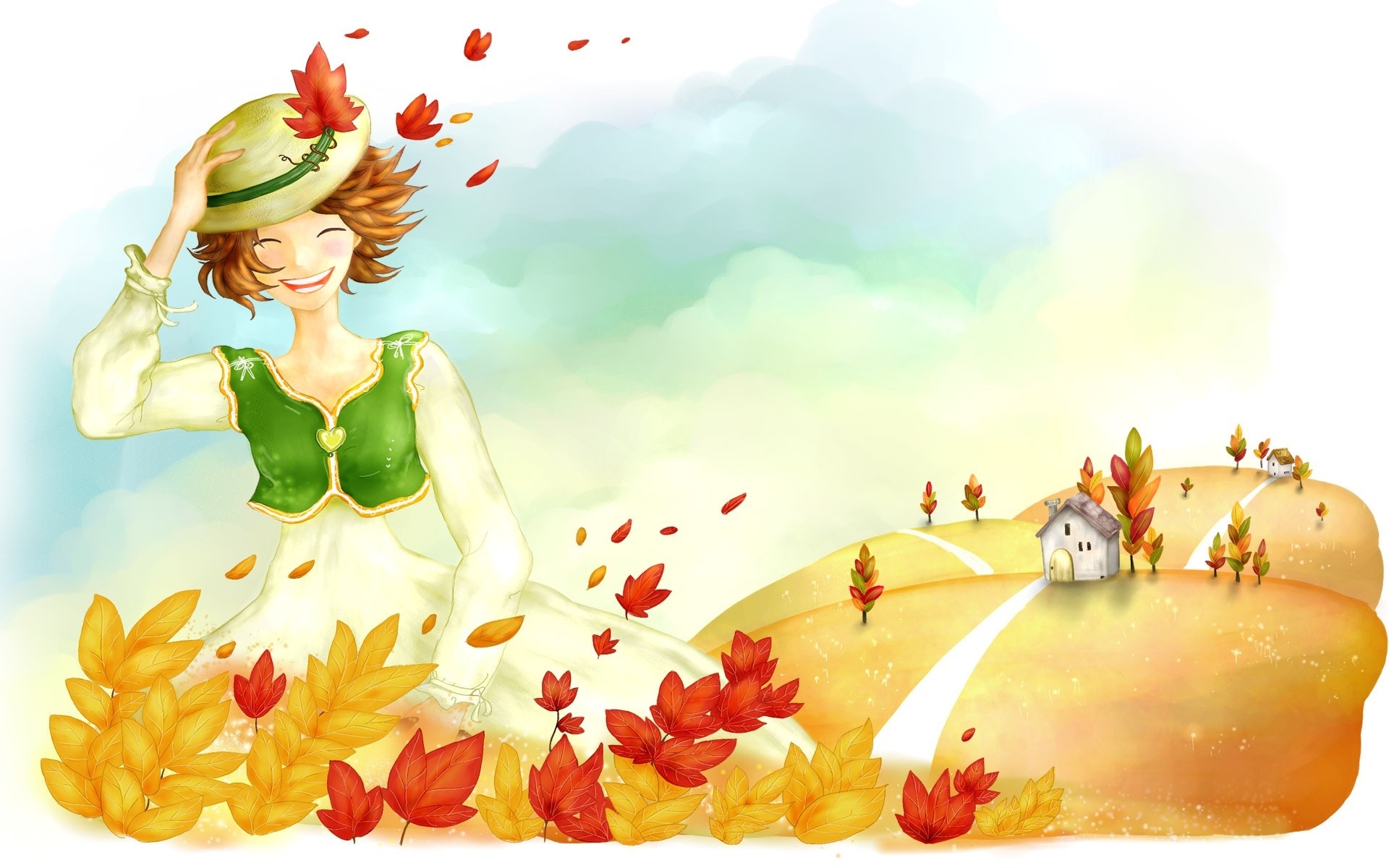 Edytor tapety: Radosna, Dziewczyna, Liście