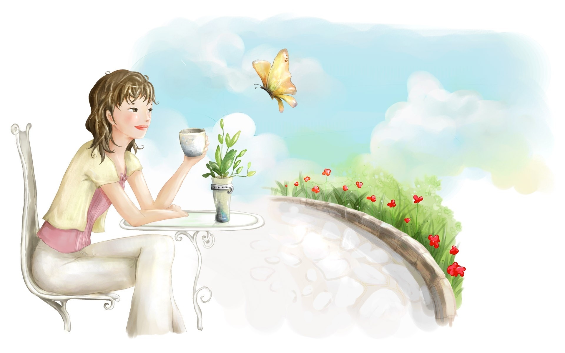Edytor tapety: Kobieta, Relaks, Taras, Kawa