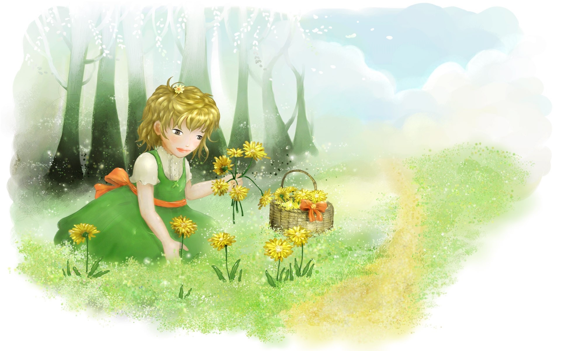 Edytor tapety: Dziewczynka, Łąka, Kwiaty