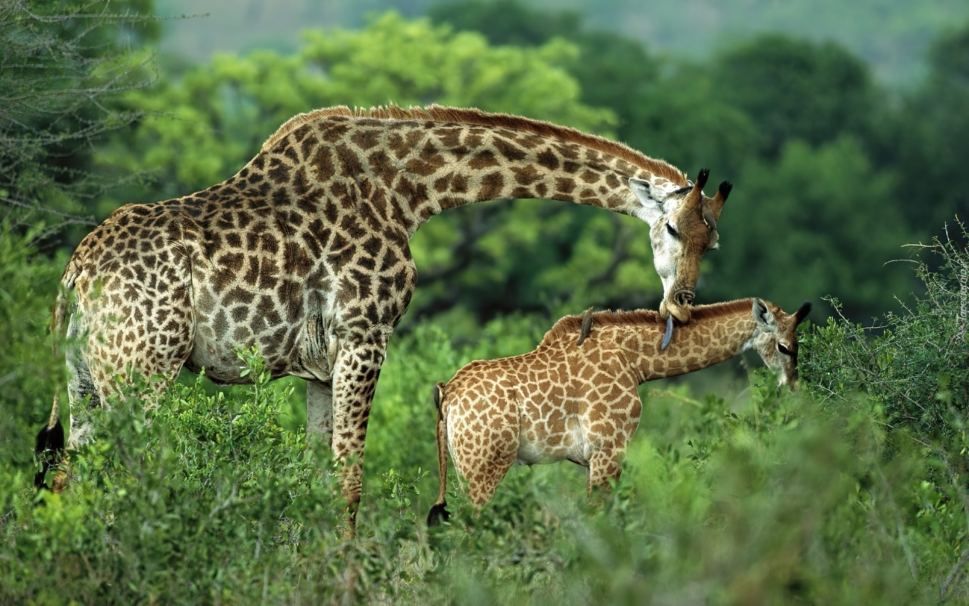 Edytor tapety: Dwie, Żyrafy, Matka, Dziecko