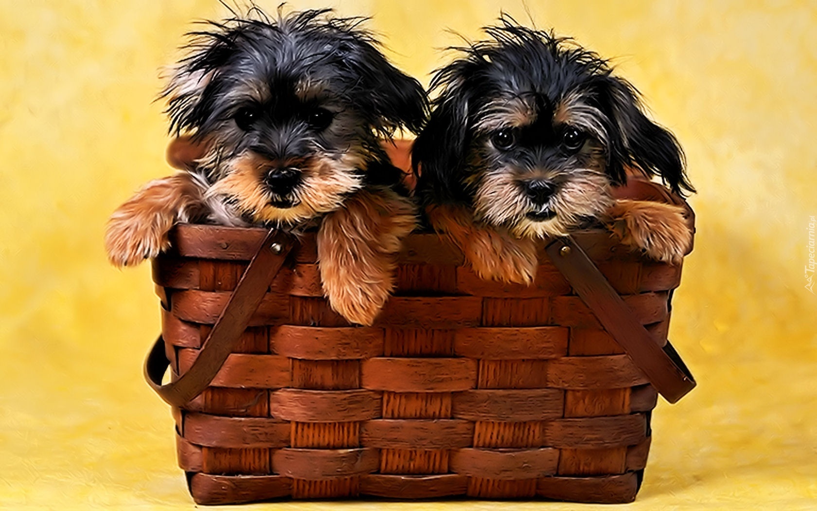 Edytor tapety: Dwa, Słodkie, Pieski, Koszyk