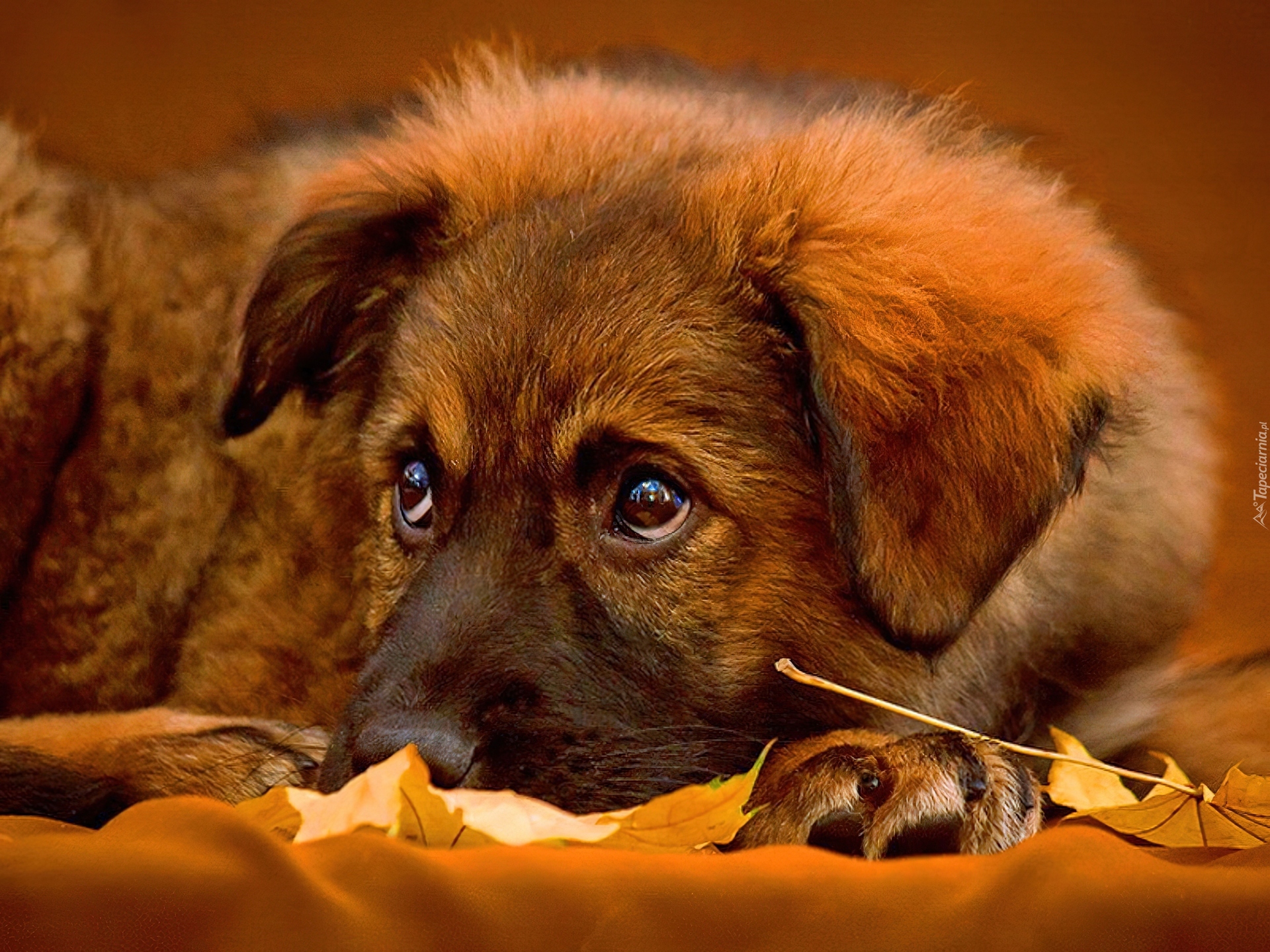 Edytor tapety: Smutny, Pies, Liście