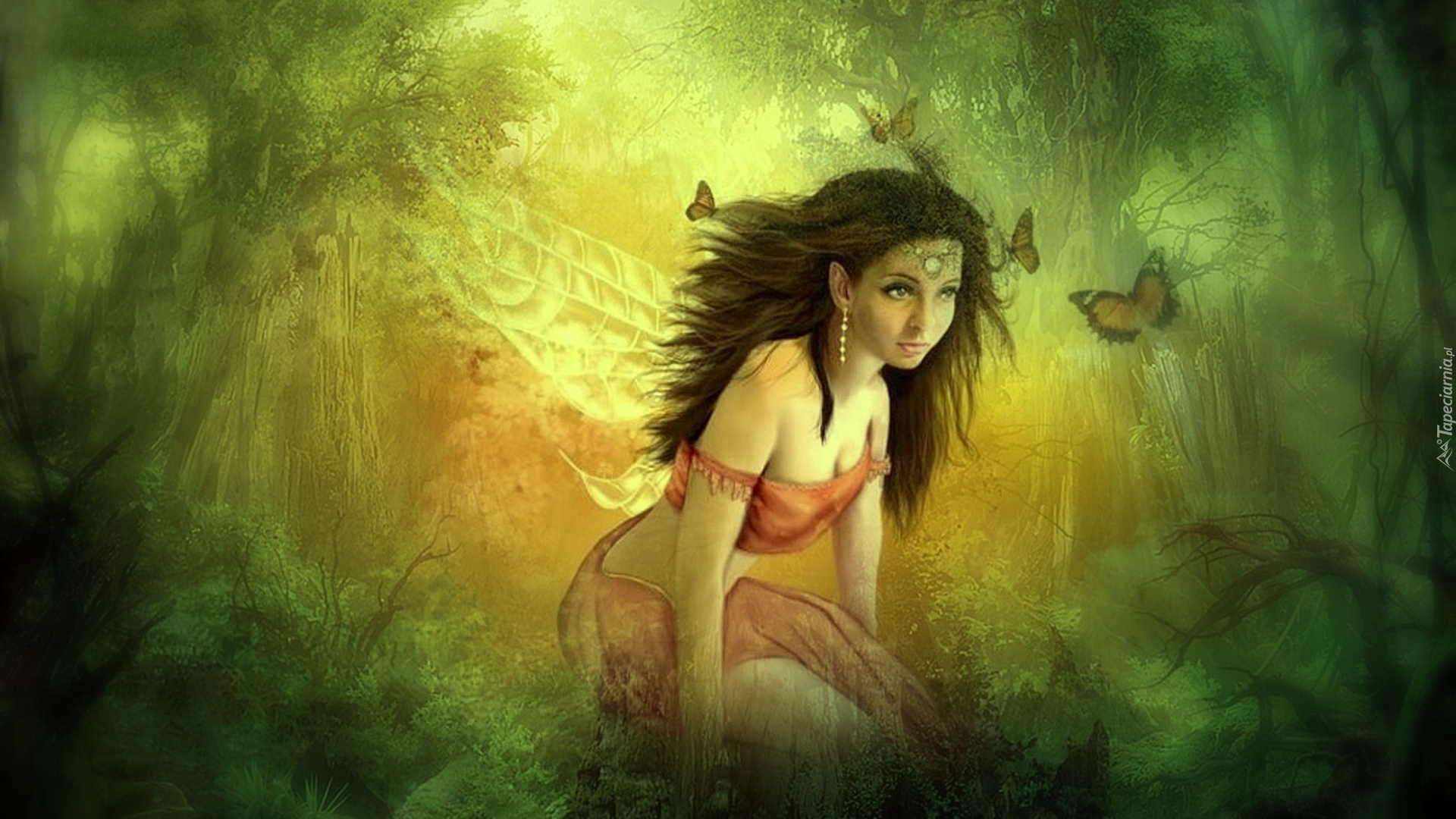 Edytor tapety: Dziewczyna, Motyle, Las