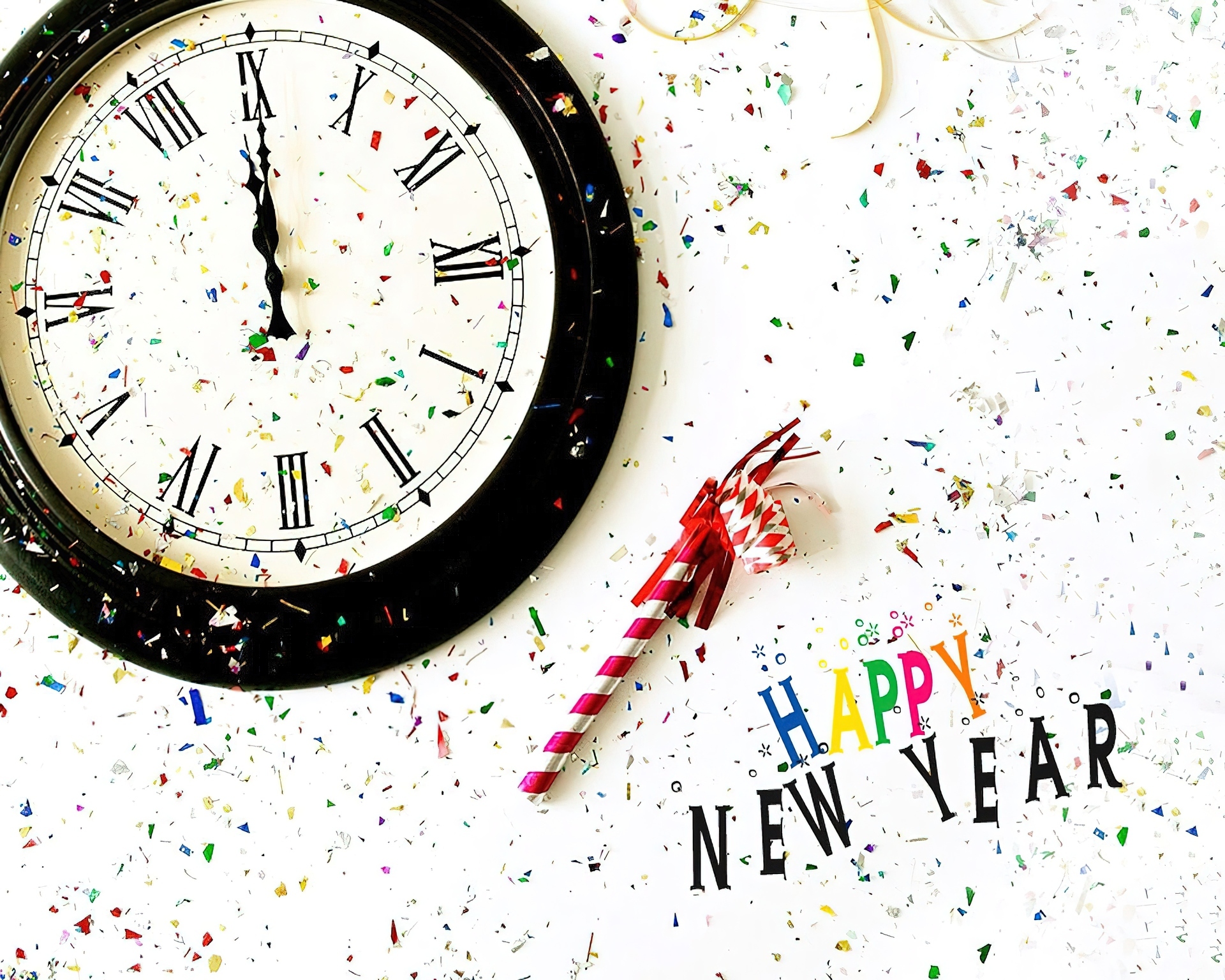 Edytor tapety: Zegar, Północ, Konfetti, Nowy Rok