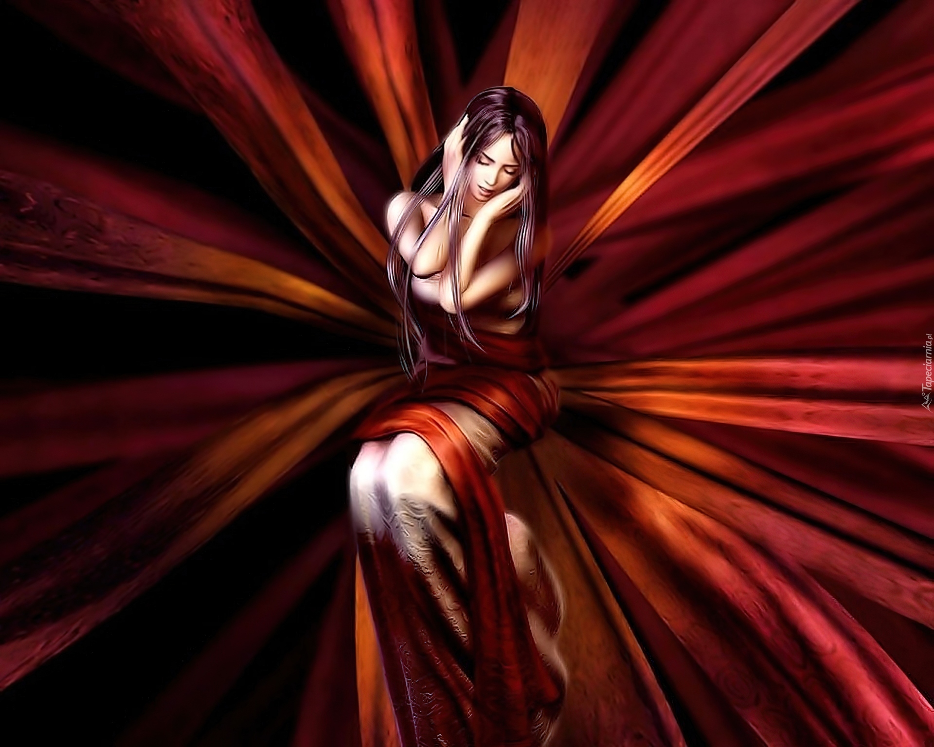 Edytor tapety: Kobieta, Czerwone, Szarfy