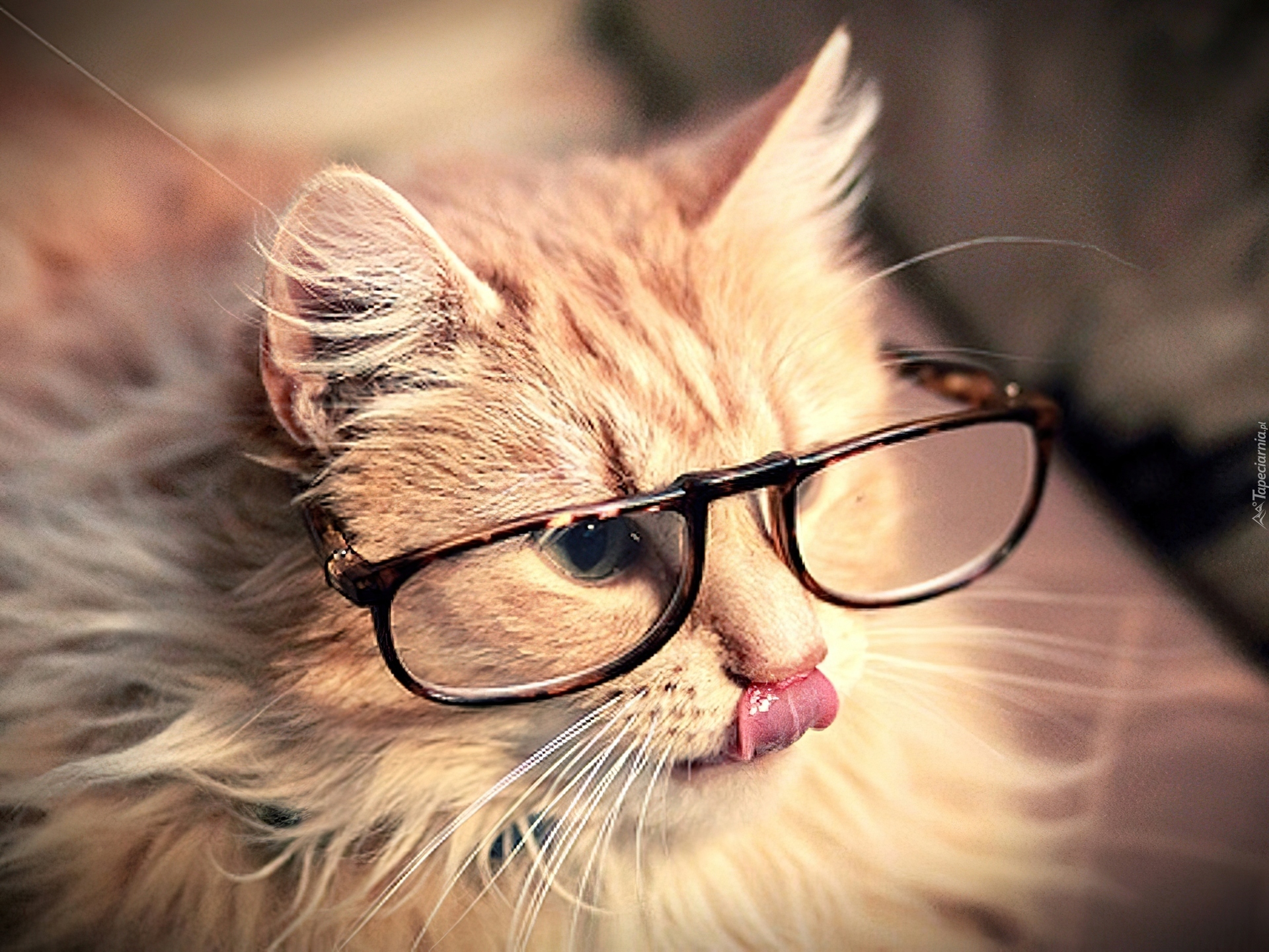 Edytor tapety: Kicia, Okulary, Język