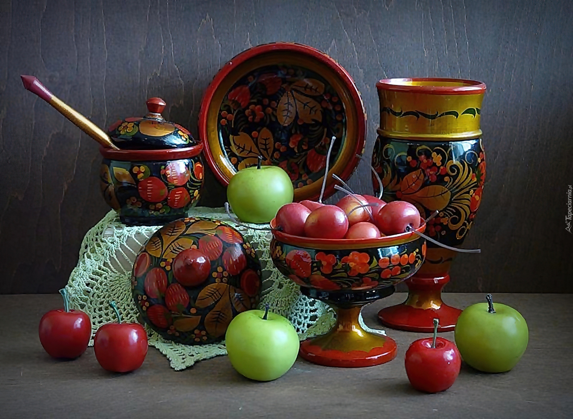 Edytor tapety: Jabłka, Czereśnie, Ozdobne, Naczynia