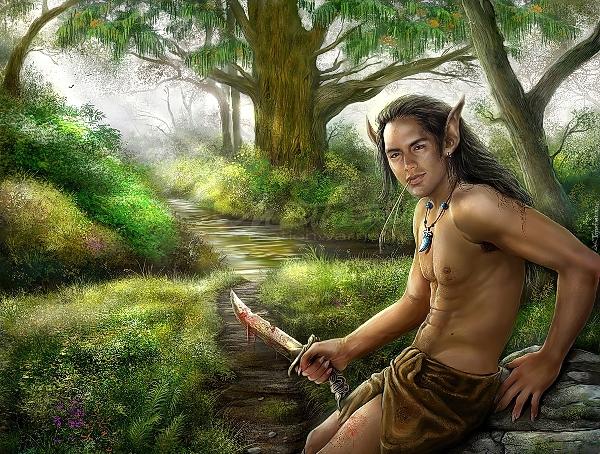 Edytor tapety: Mężczyzna, Elf, Las, Miecz