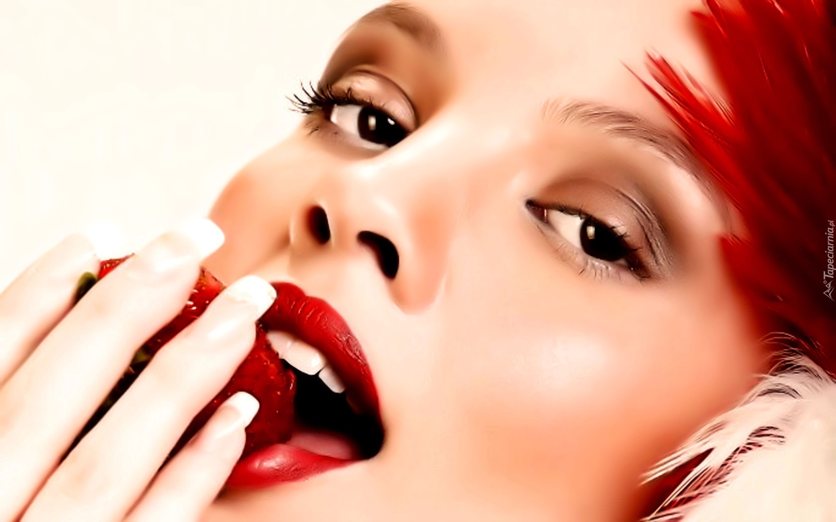 Edytor tapety: Kobieca, Twarz, Truskawka
