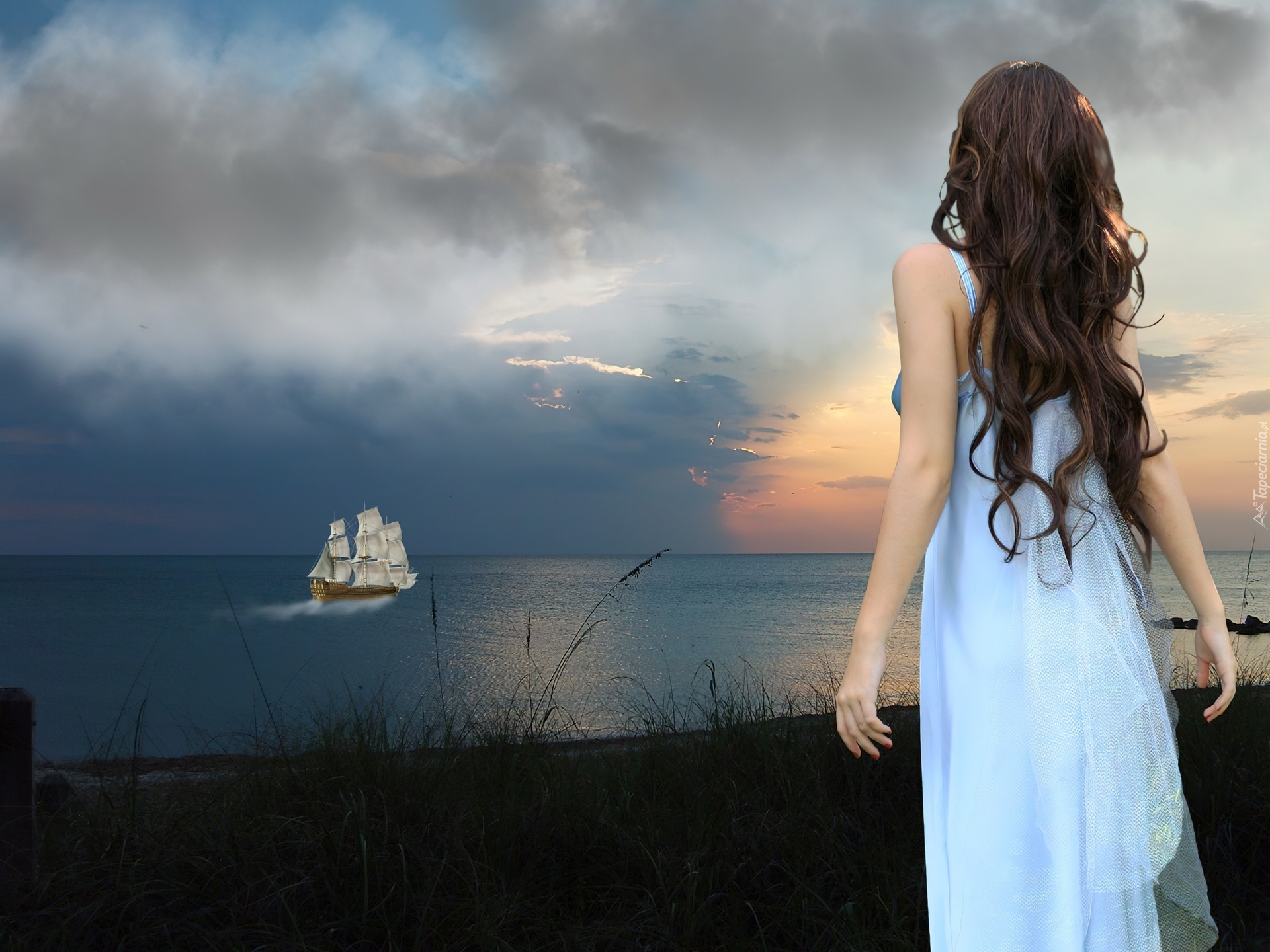 Edytor tapety: Kobieta, Woda, Żaglowiec