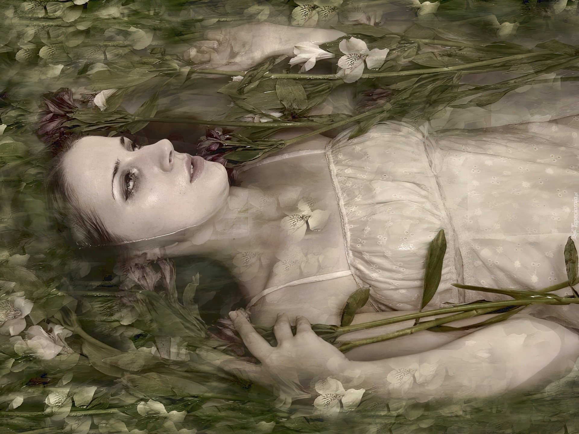 Edytor tapety: Dziewczyna, Woda, Kwiaty