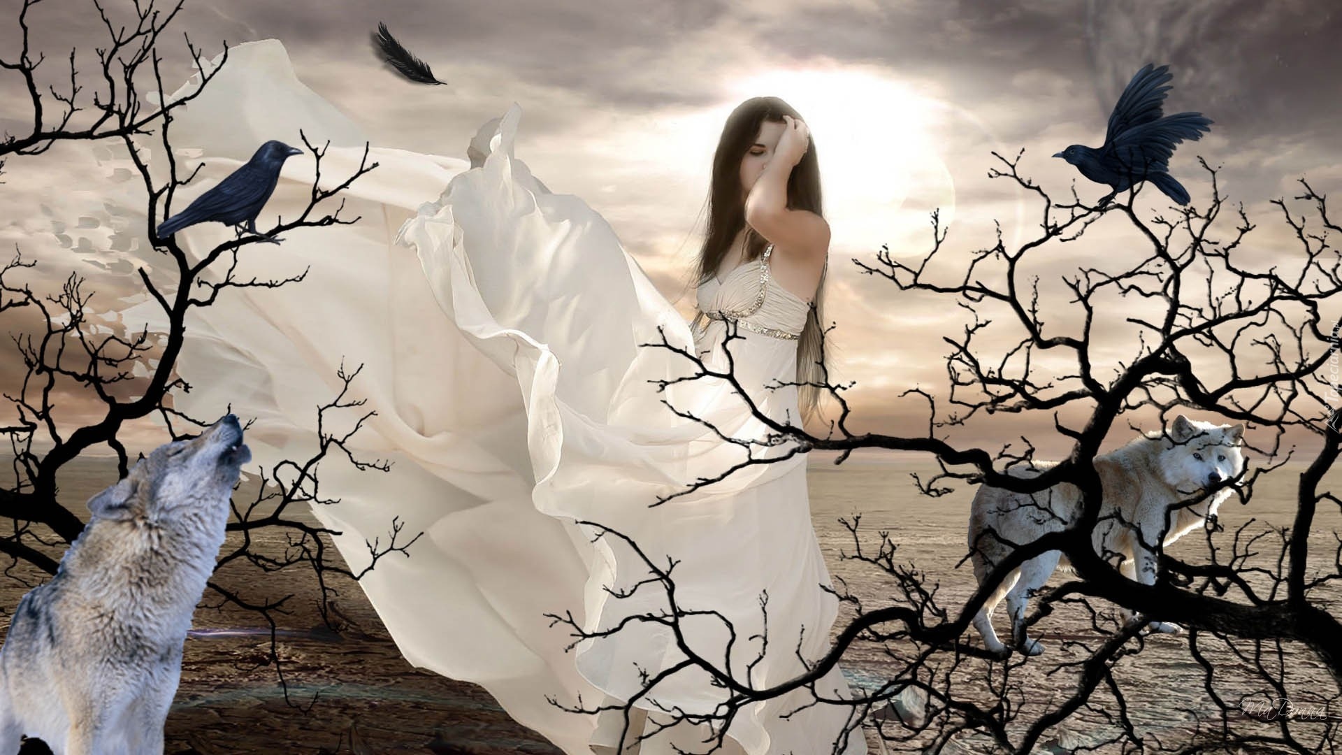 Edytor tapety: Kobieta, Wilki, Ptaki