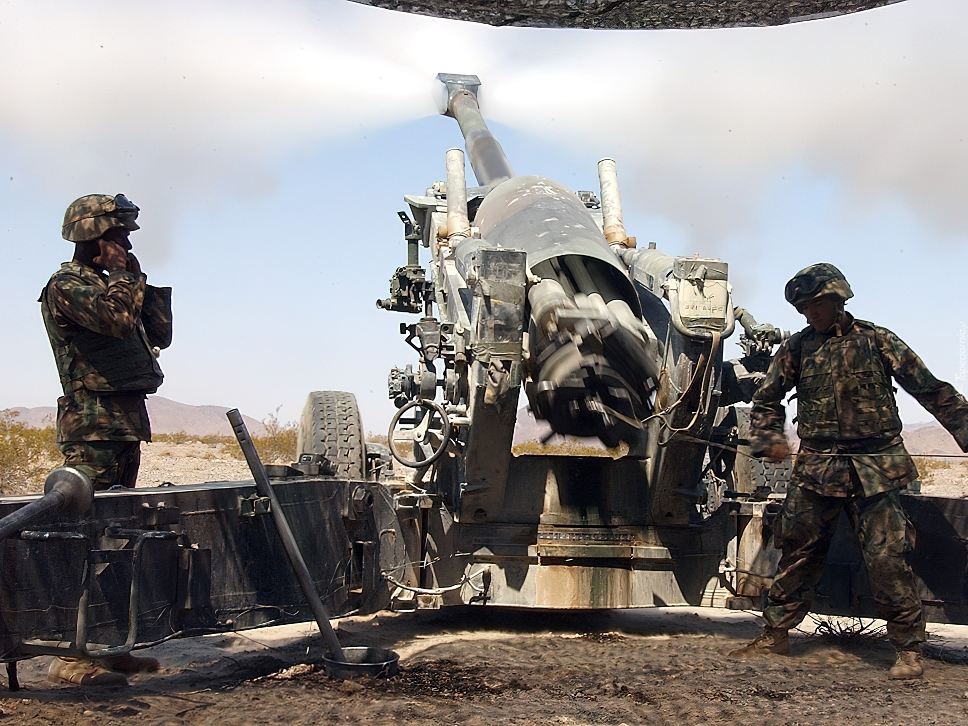 Edytor tapety: Działo, Poligon, Żołnierze