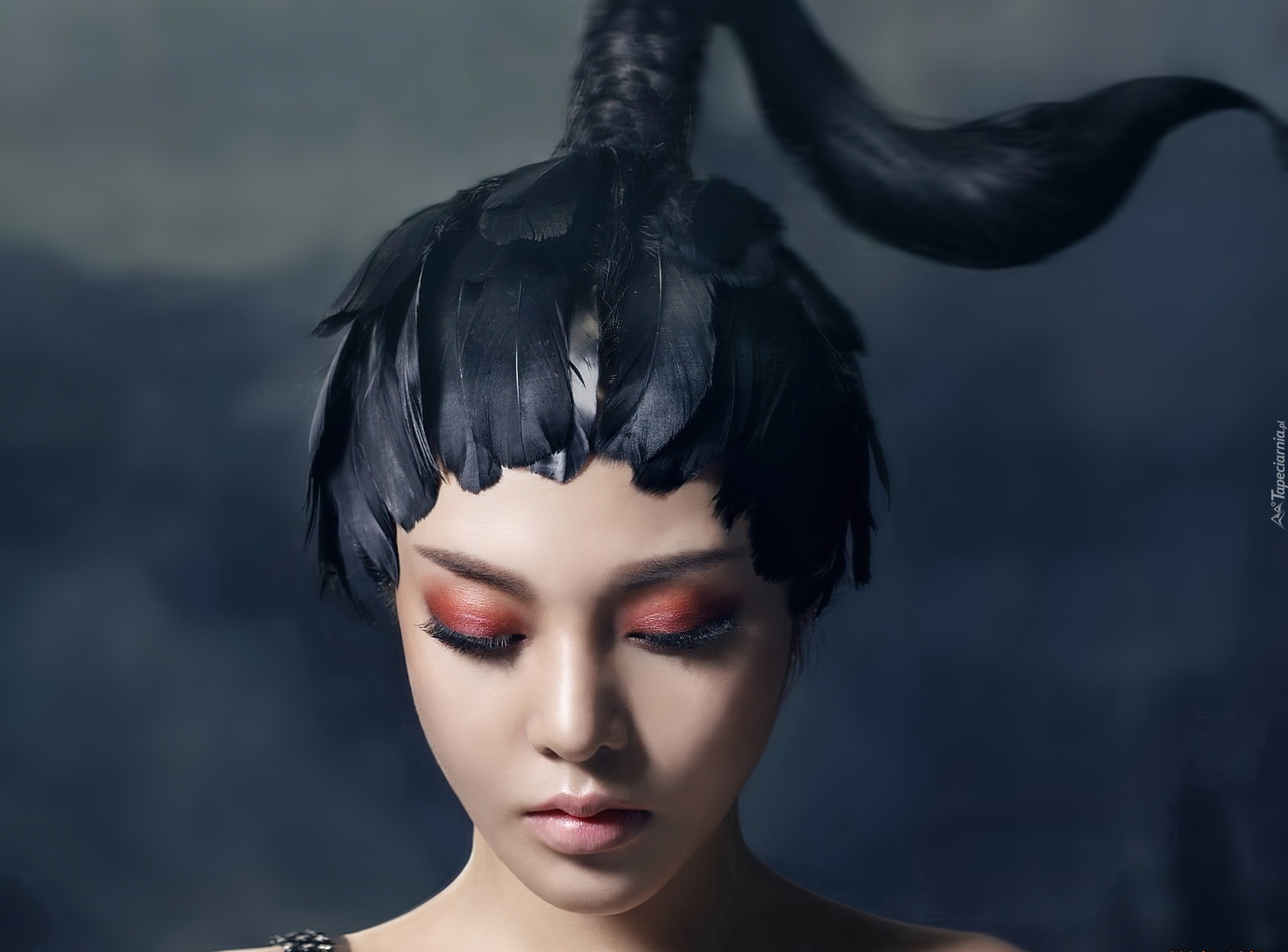 Edytor tapety: Dziewczyna, Makijaż, Pióra, Charakteryzacja