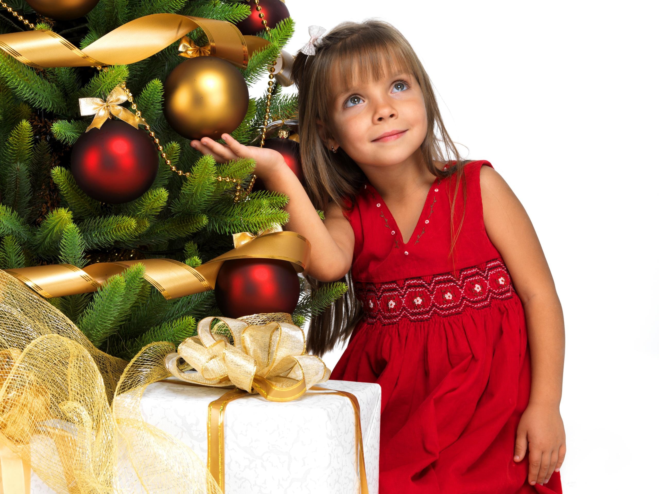 Edytor tapety: Choinka, Prezent, Dziewczynka